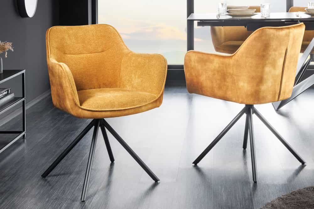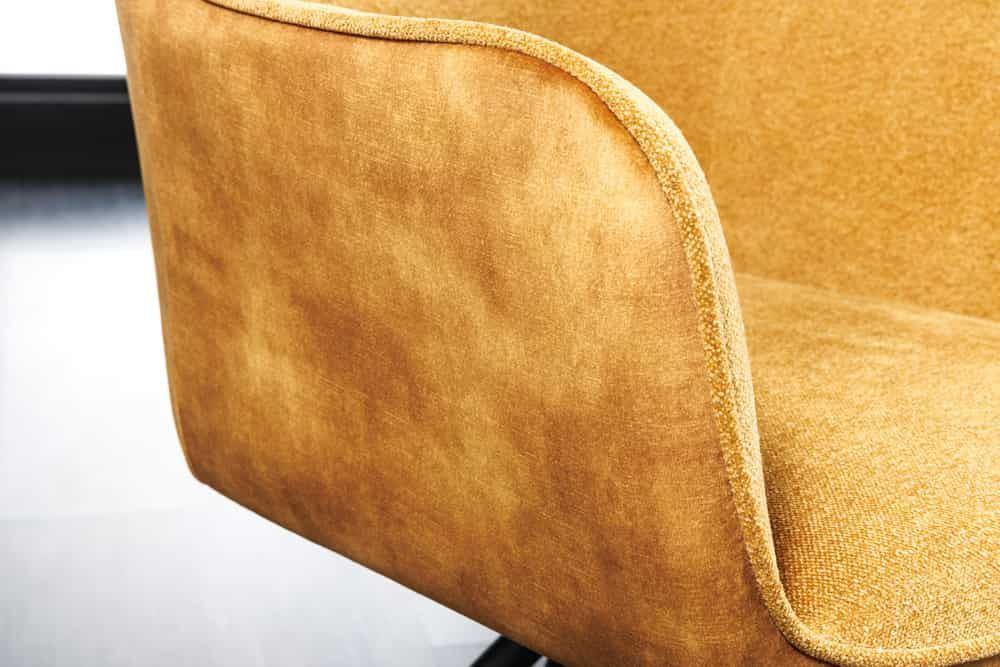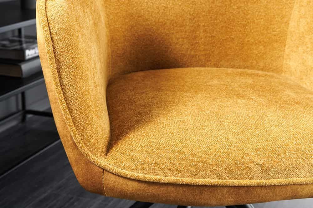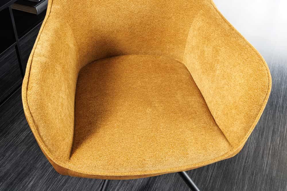 Eleganter Design-Drehstuhl Florenz senfgelb Samt Strukturstoff Metallgestell
