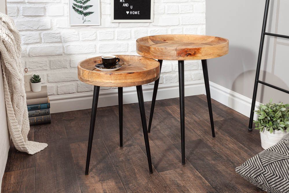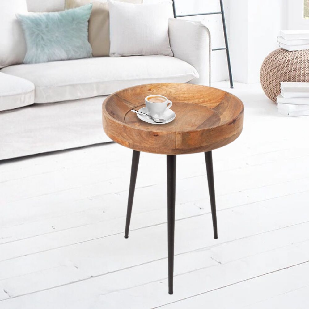 Eleganter Mangoholz Beistelltisch ARTE natural 45cm schwarze Metallbeine