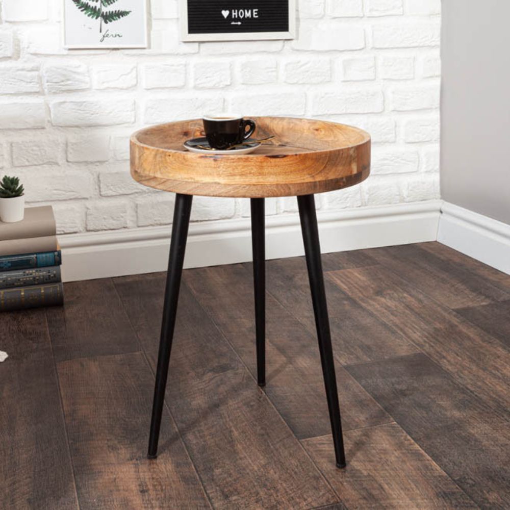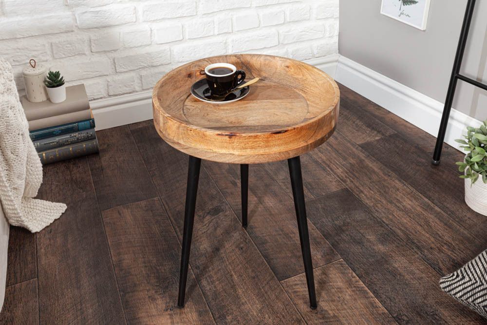 Eleganter Mangoholz Beistelltisch ARTE natural D35cm schwarze Metallbeine