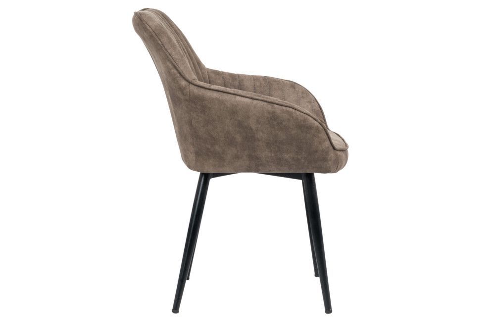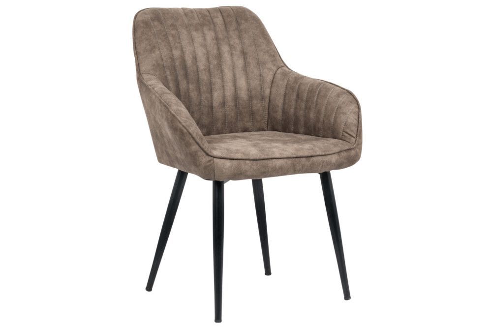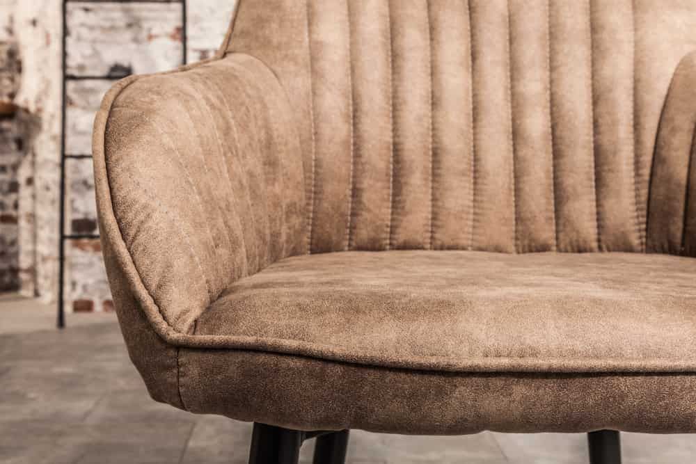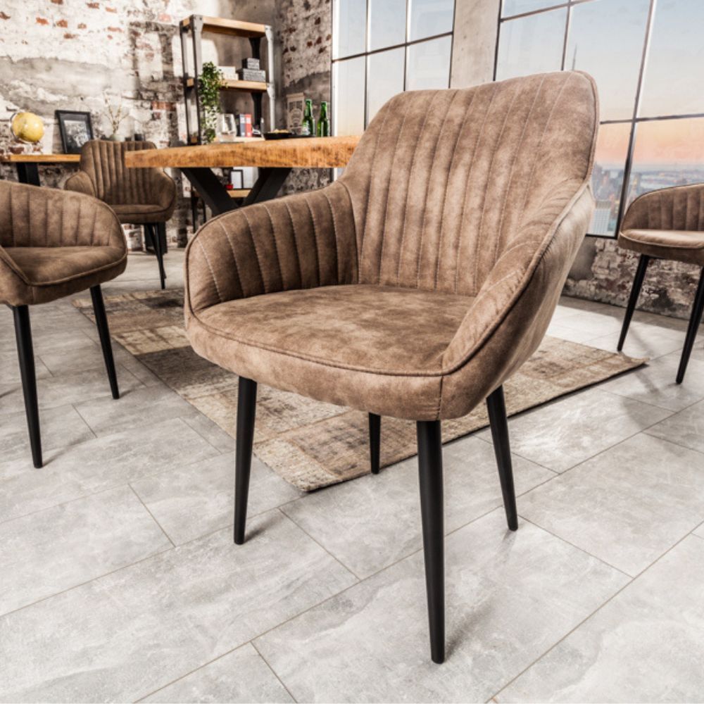 Eleganter Stuhl MILAN Mikrofaser Taupe Ziersteppung Armlehnen Esszimmerstuhl Retro