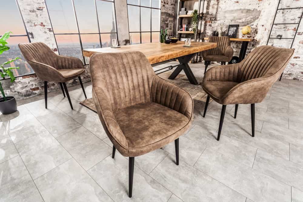 • Eleganter Stuhl MILAN Mikrofaser Vintage-Braun Ziersteppung Armlehnen Esszimmerstuhl