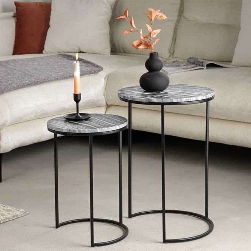 Elegantes Beistelltisch 2er Set MARMO 55cm grau-weiss Marmor-Dekor