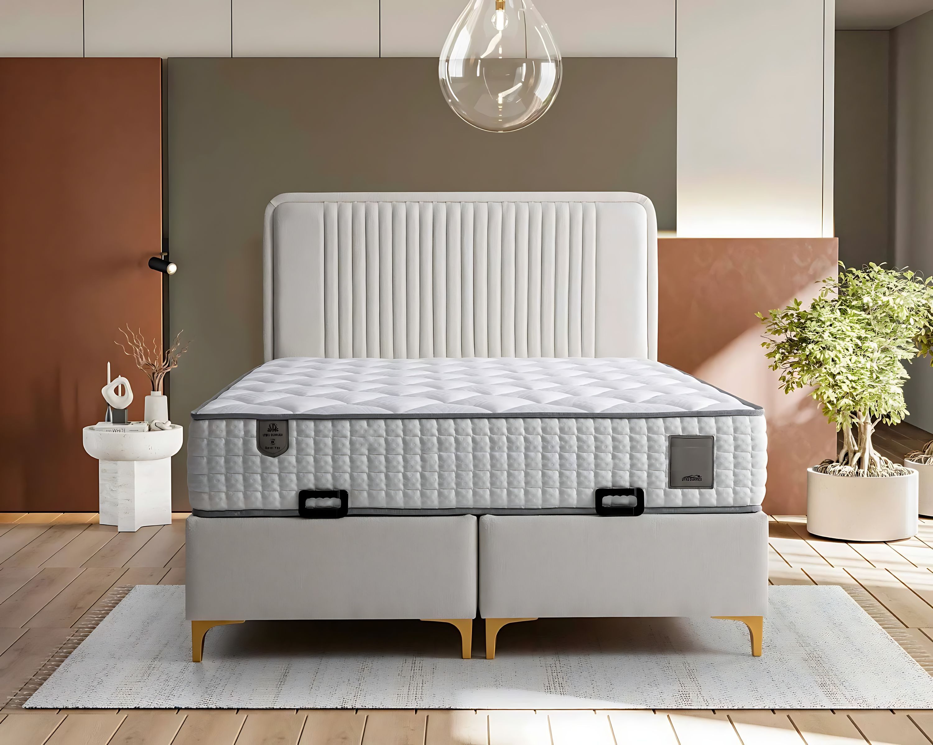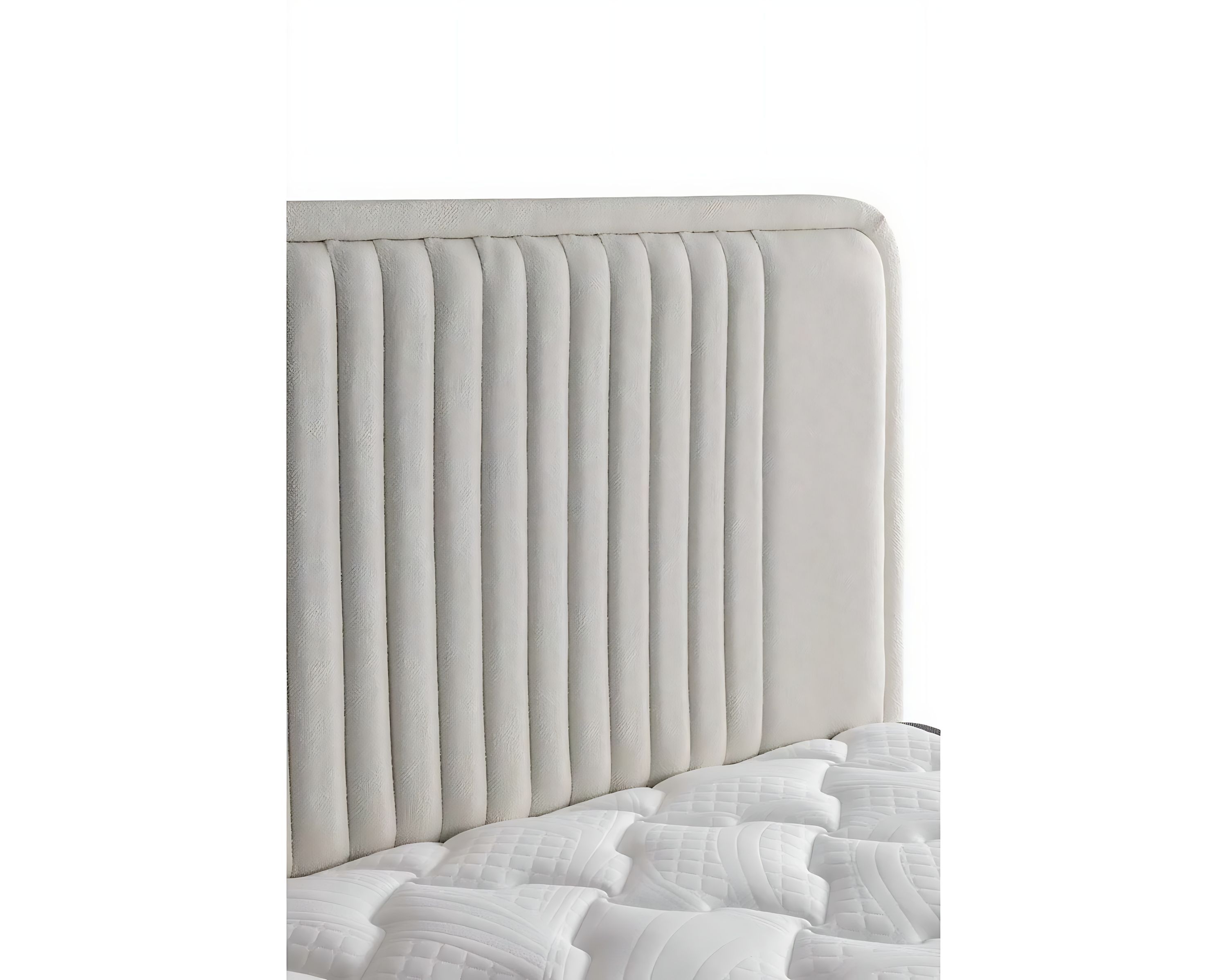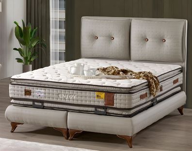 Elegantes Bett mit Matratze aus Textil in Beige für modernes