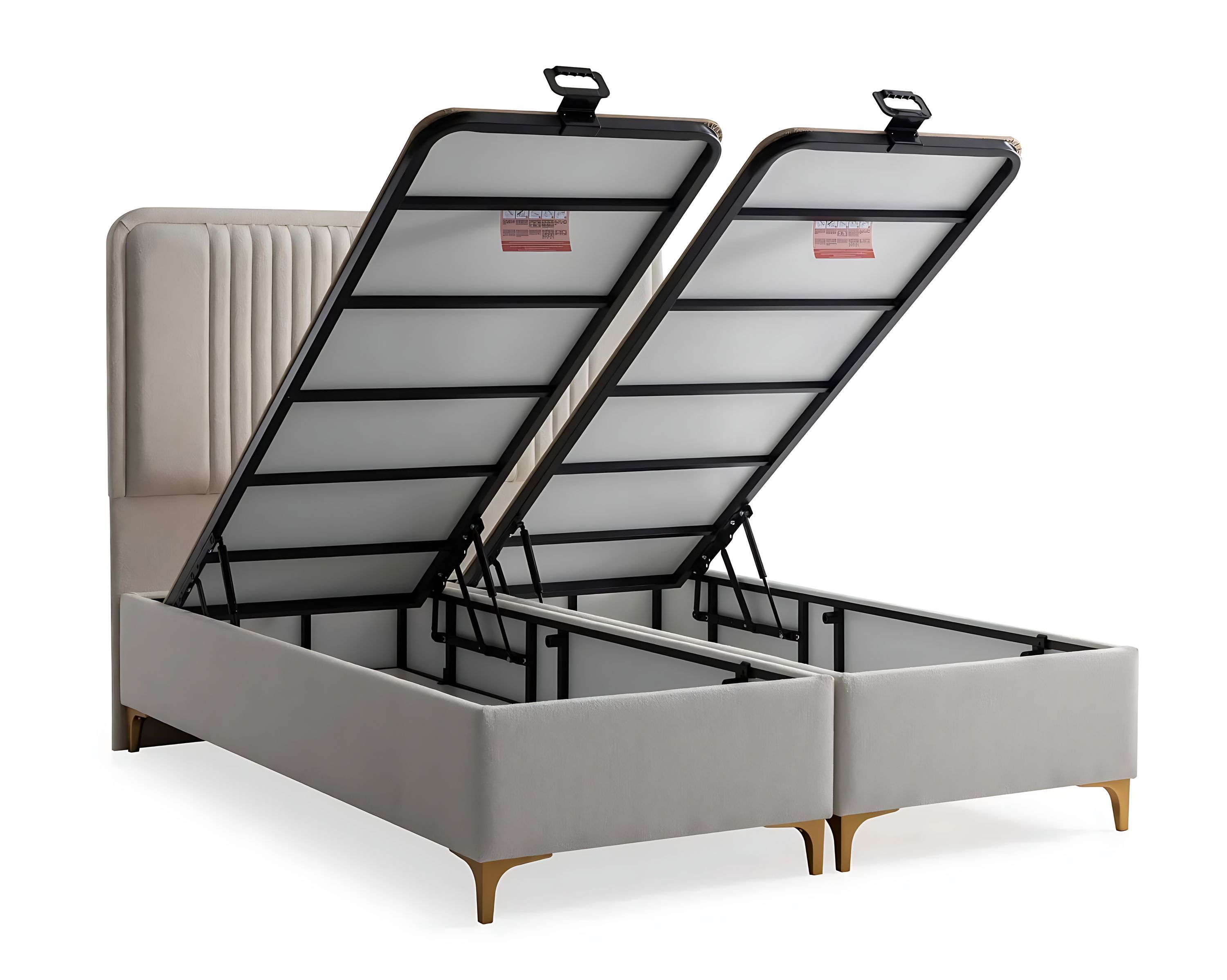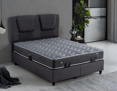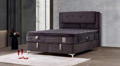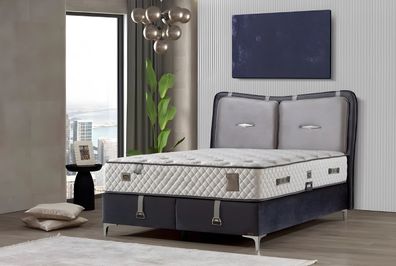 Graues Doppelbett Polster Betten Bettkasten Design Eleganter Stoff Bett