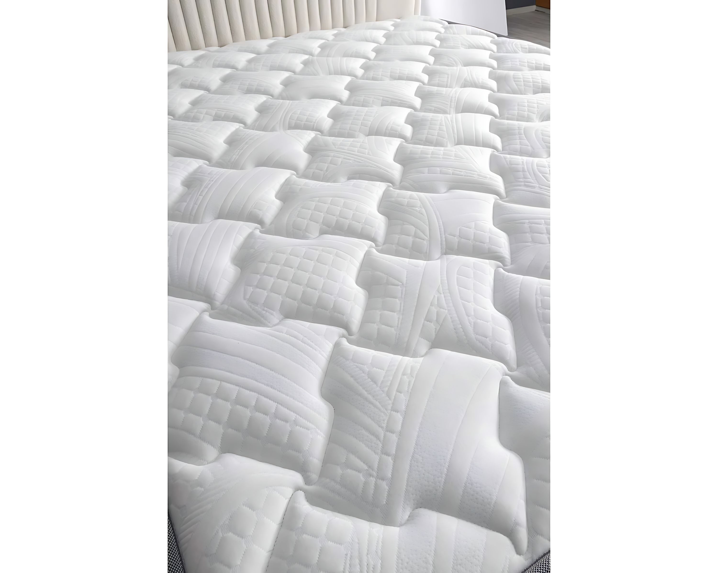 Elegantes weißes Bett mit Matratze aus Textil und Holz