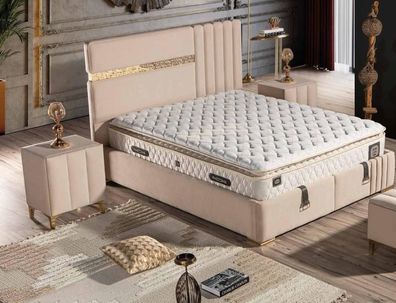 Elegantes Bett mit Matratze in Beige aus Textil und Edelstahl