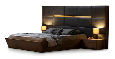 Elegantes braunes Bett mit Matratze aus Holz und Textil