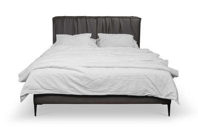 Elegantes schwarzes Bett mit Matratze aus Textil und Edelstahl