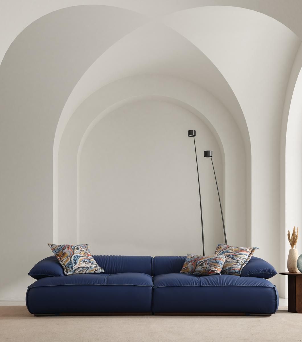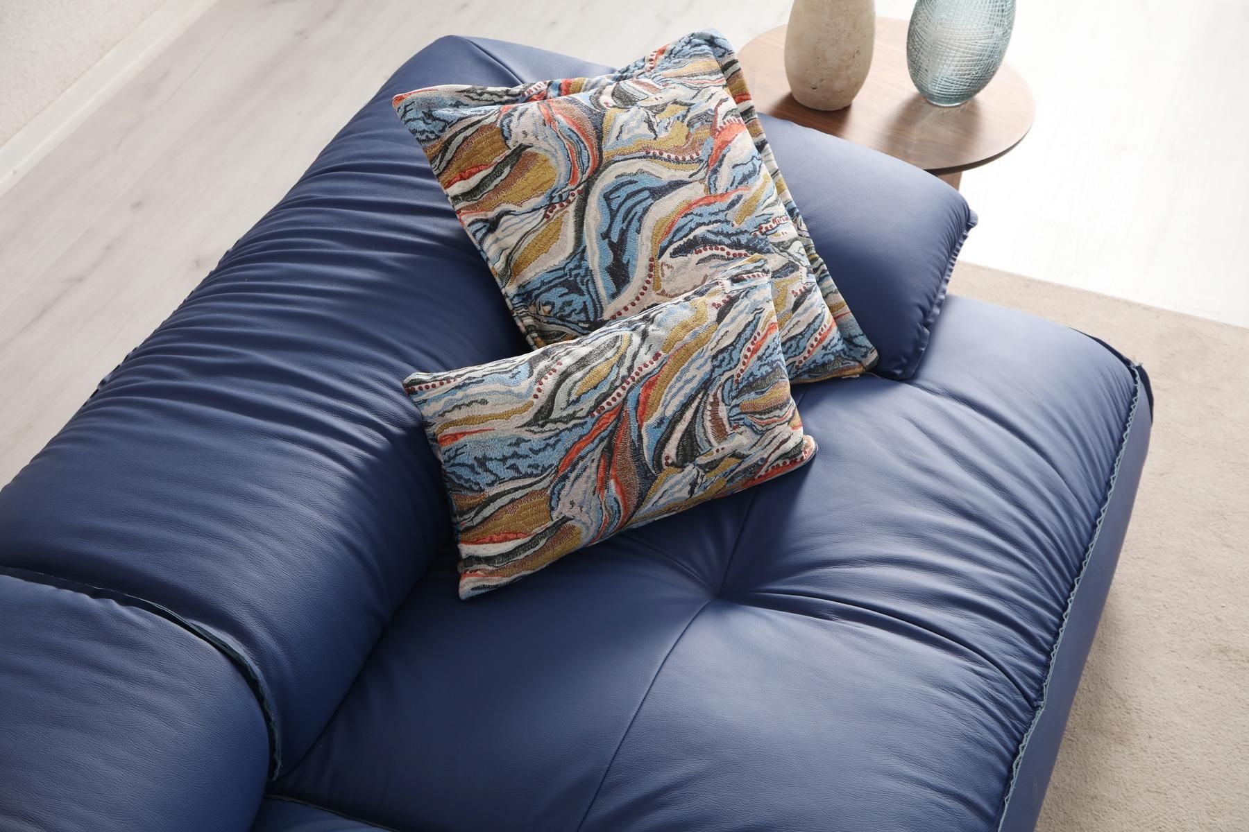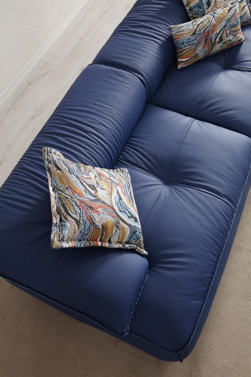 Elegantes Blaues Ledersofa Wohnzimmer Couchen Polstersofa
