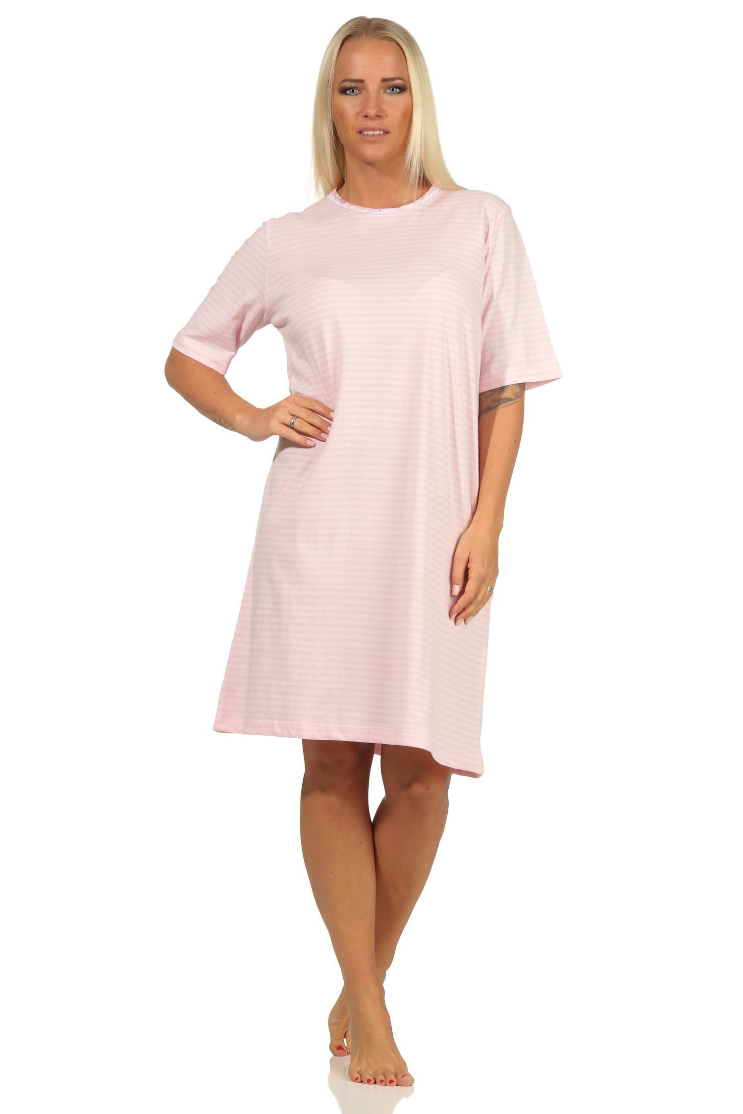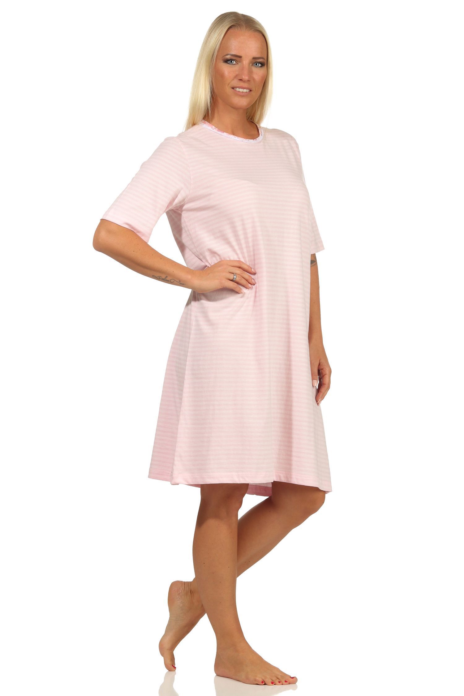 Elegantes Damen kurzarm Nachthemd mit Spitzenbesatz in Ringeloptik – auch in Übergr
