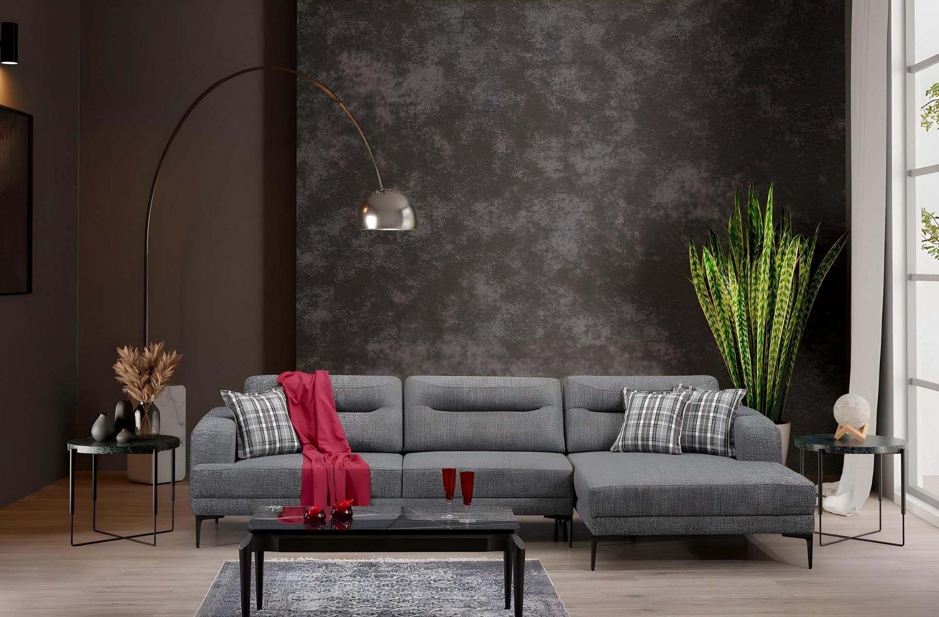 Elegantes graues Stoff-Ecksofa in L-Form modern und komfortabel