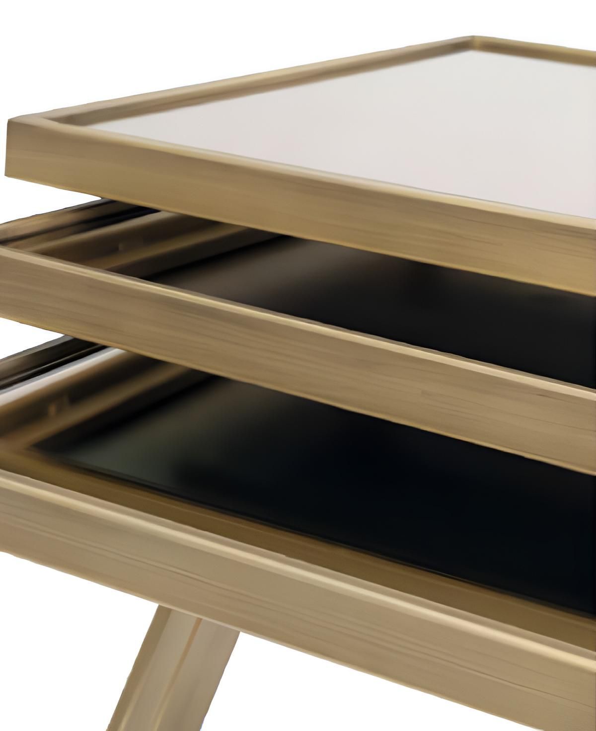 Elegantes Set Beistelltische mit goldenen Rahmen und Glasplatten