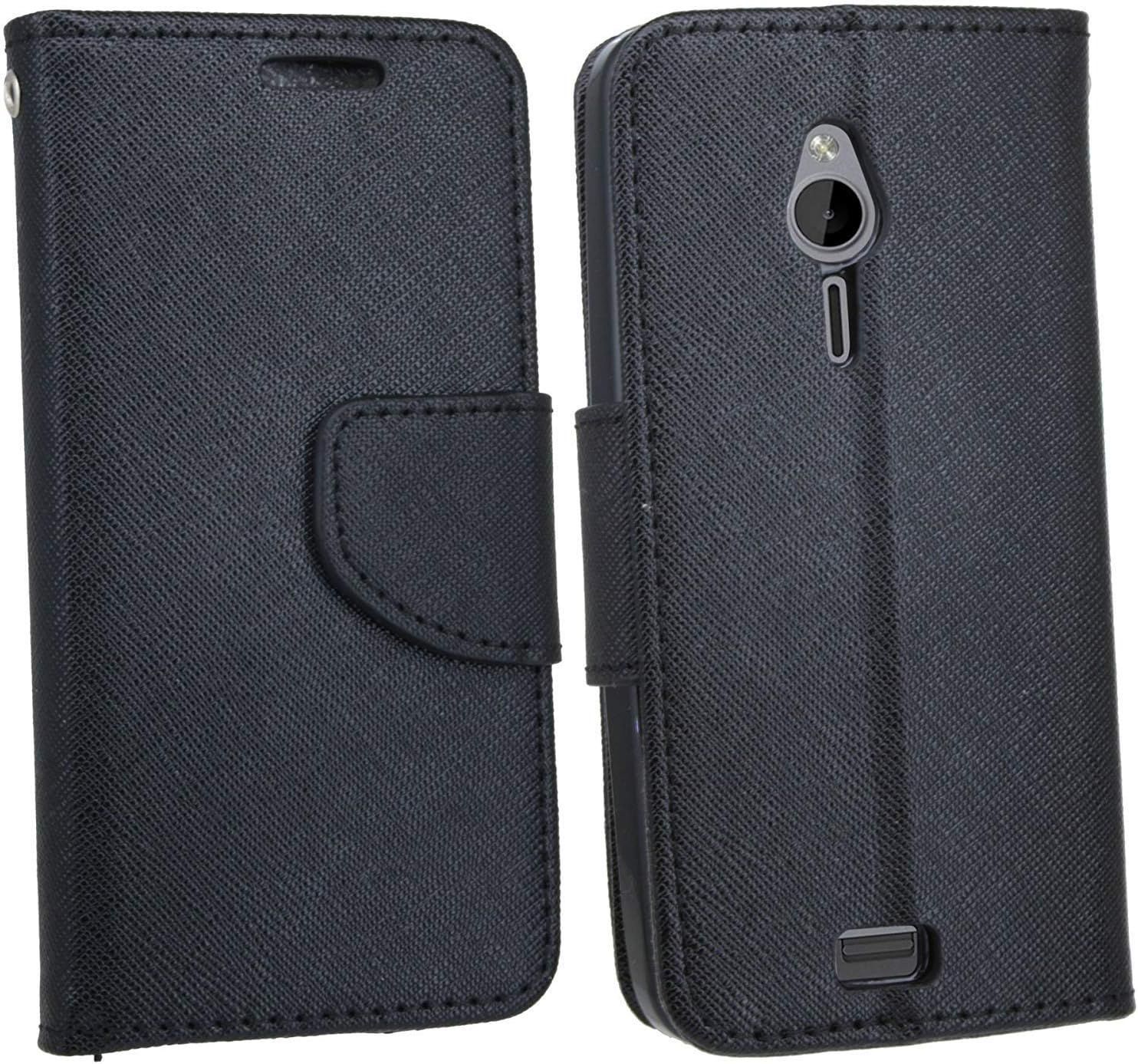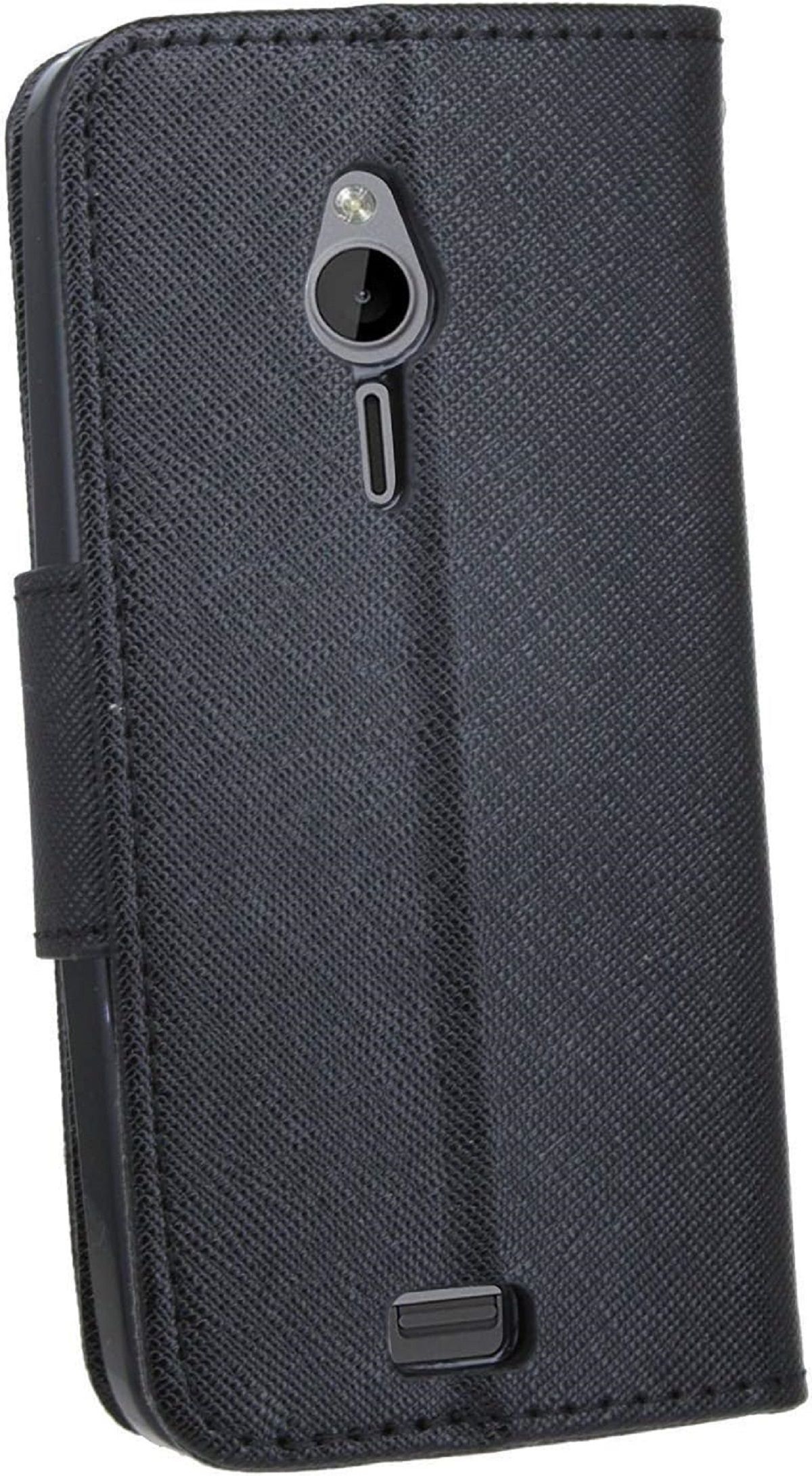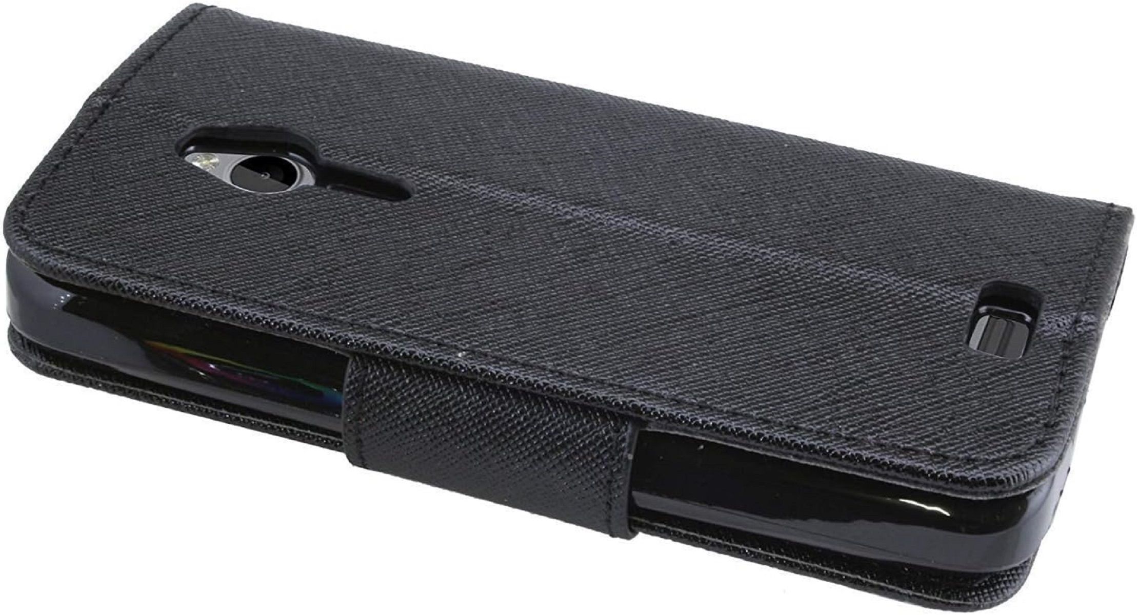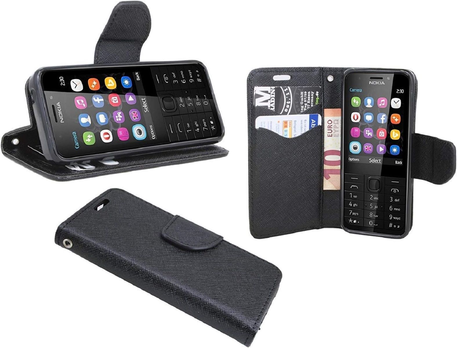 Elegantes Taschenetui kompatibel mit Nokia 230 aus schwarzem Leder im optischen