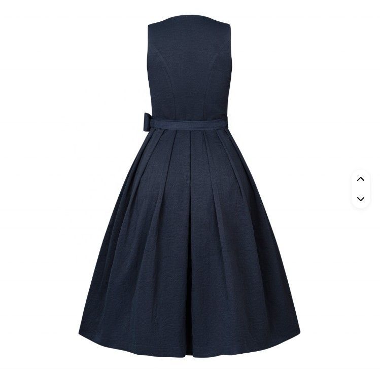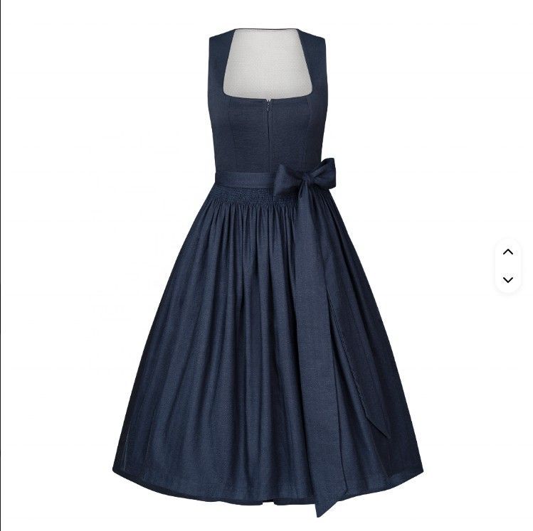 Elegantes Vintage Dirndl Dunkelblau Midi - Leinenschürze - Minimalistisch