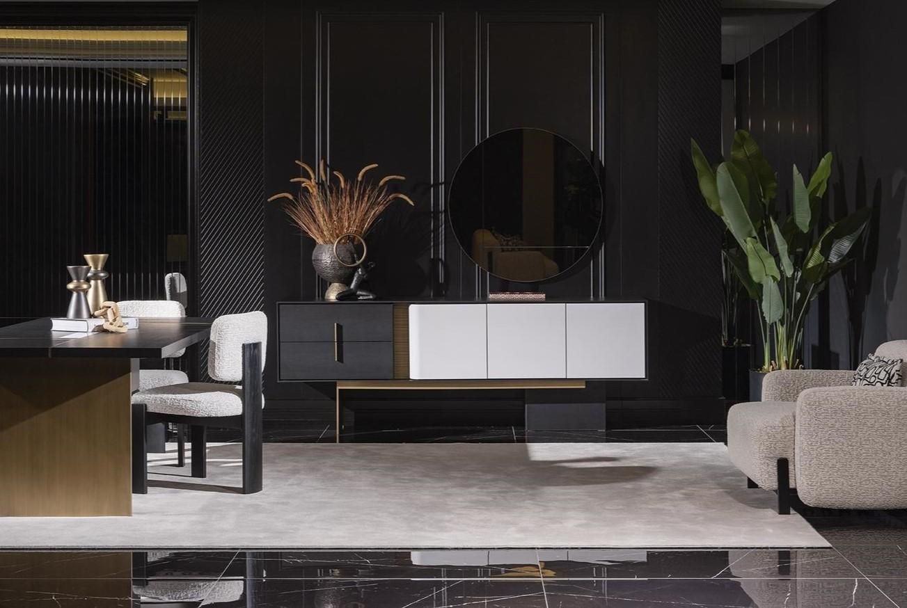 Elegantes Weißes 2-teiliges Esszimmer Set mit Sideboard und Spiegel