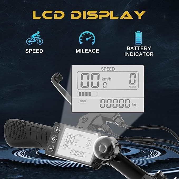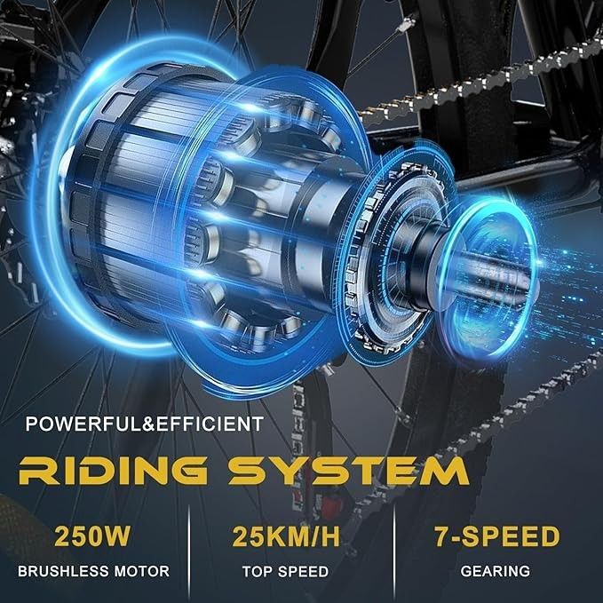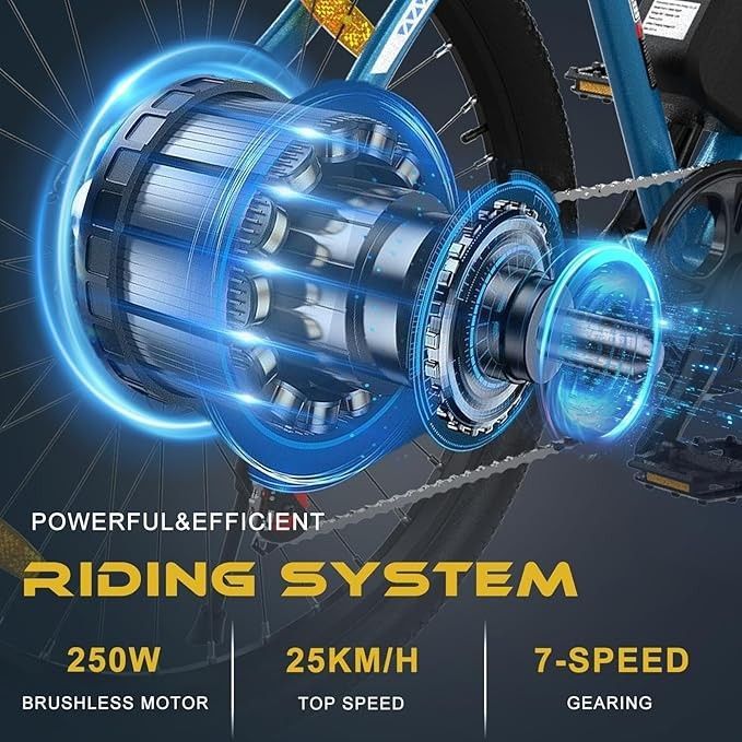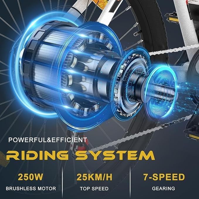 VTT mit 7 Gängen, Elektro-Fahrrad, Reichweite über 65 km, stoßdämpfender Sattel