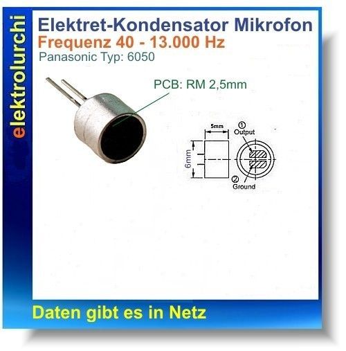 Panasonic Elektret Kondensator Mikrofonkapsel / Mikrofon von Panasonic Typ:6050, Printmon. 1St.