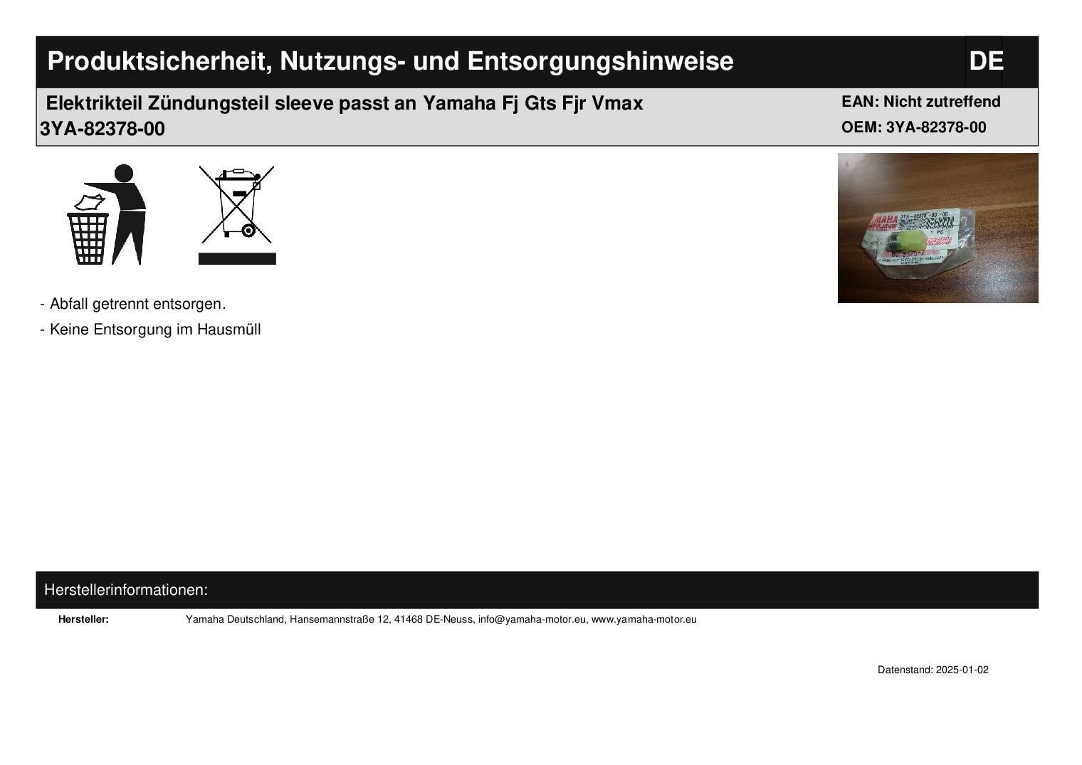 Elektrikteil Zündungsteil sleeve passt an Yamaha Fj Gts Fjr Vmax 3YA-82378-00 In dieser Auktion gibt es folgenden Artikel zu kaufen: originales Elektrikteil (siehe Foto) Modell: passend für Yamaha 1992 ABS - FJ1200AD ELECTRICAL 3 1992 ABS - FJ1200ADC ELECTRICAL 3 1993 FJ1200AE ELECTRICAL 3 1993 FJ12