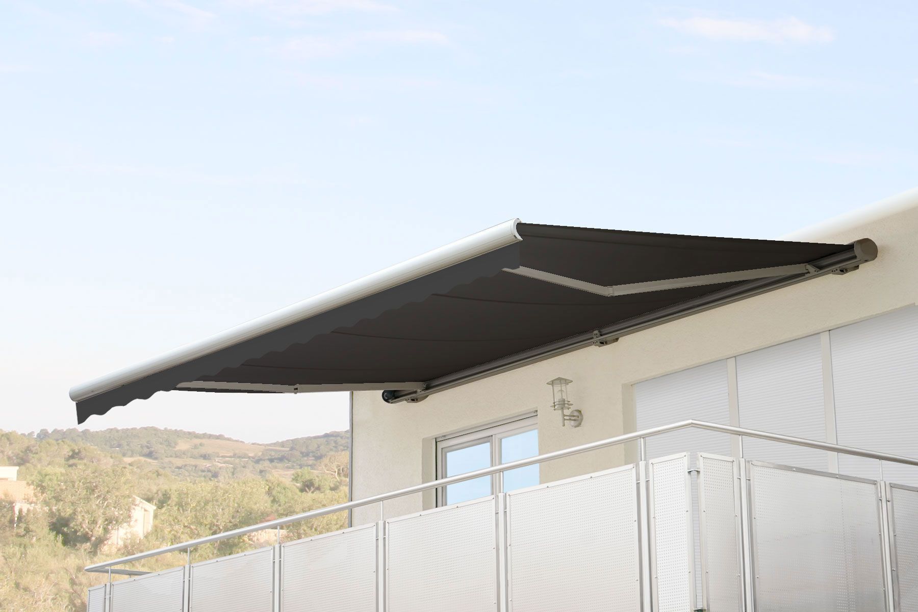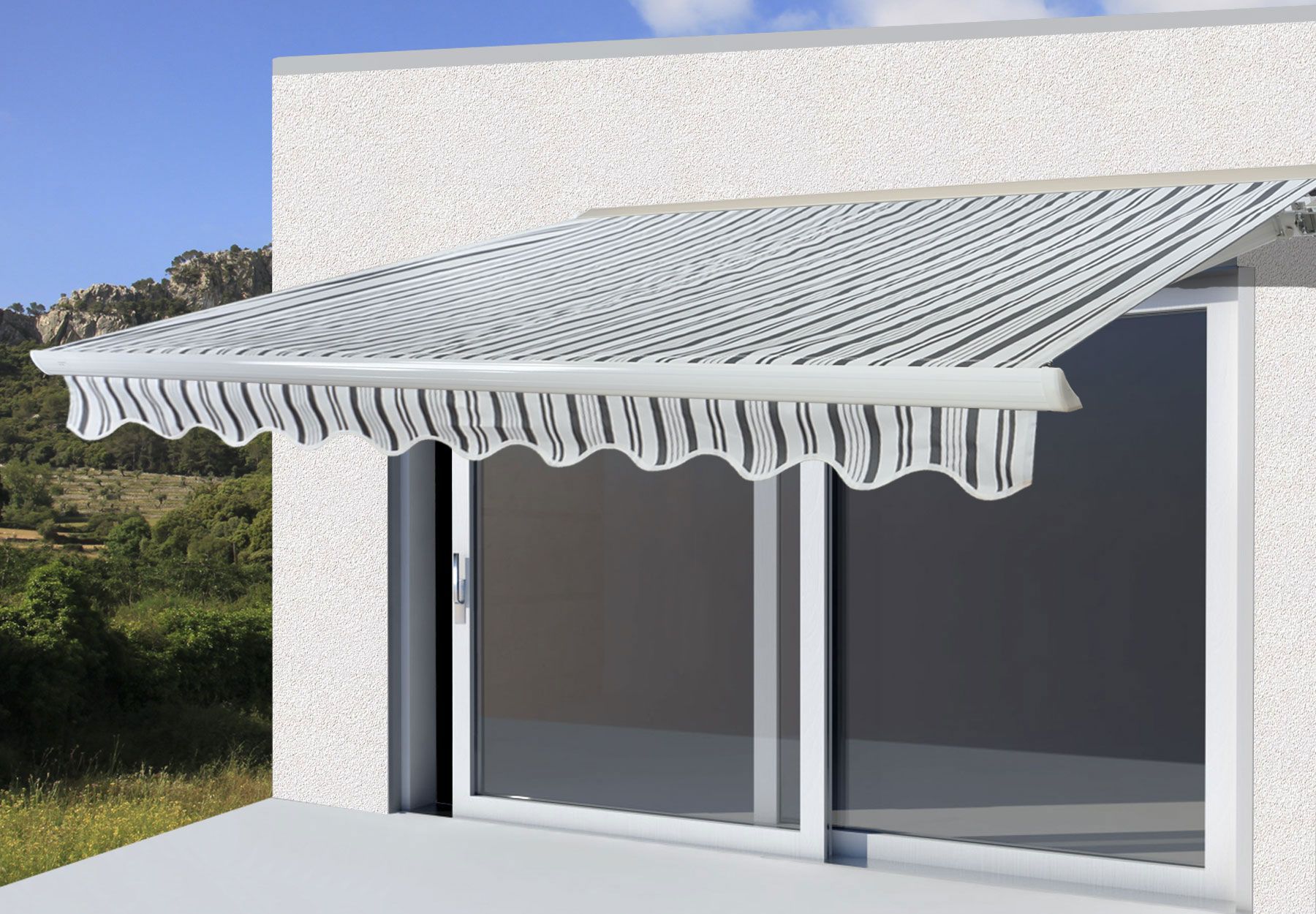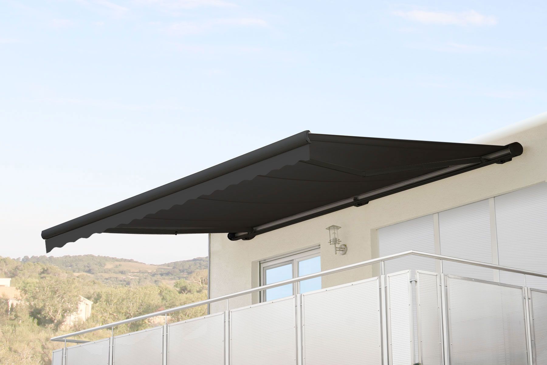 Mendler Elektrische Kassetten-Markise T124, Vollkassette Volant 5x3m