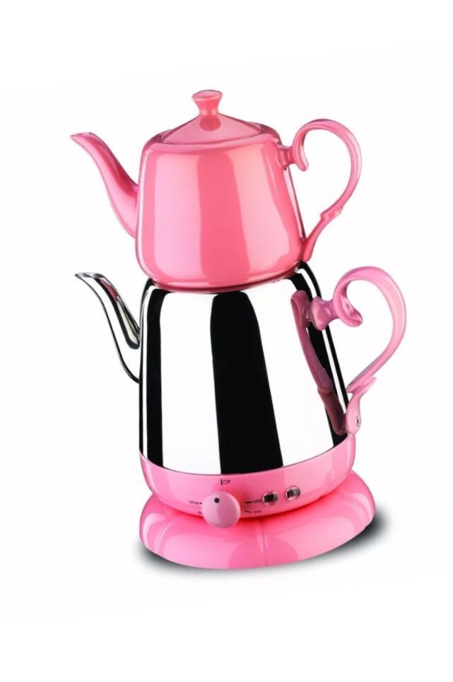 Korkmaz Elektrische Teekocher Edelstahl 2,7 l Teemaschine Semaver Pink