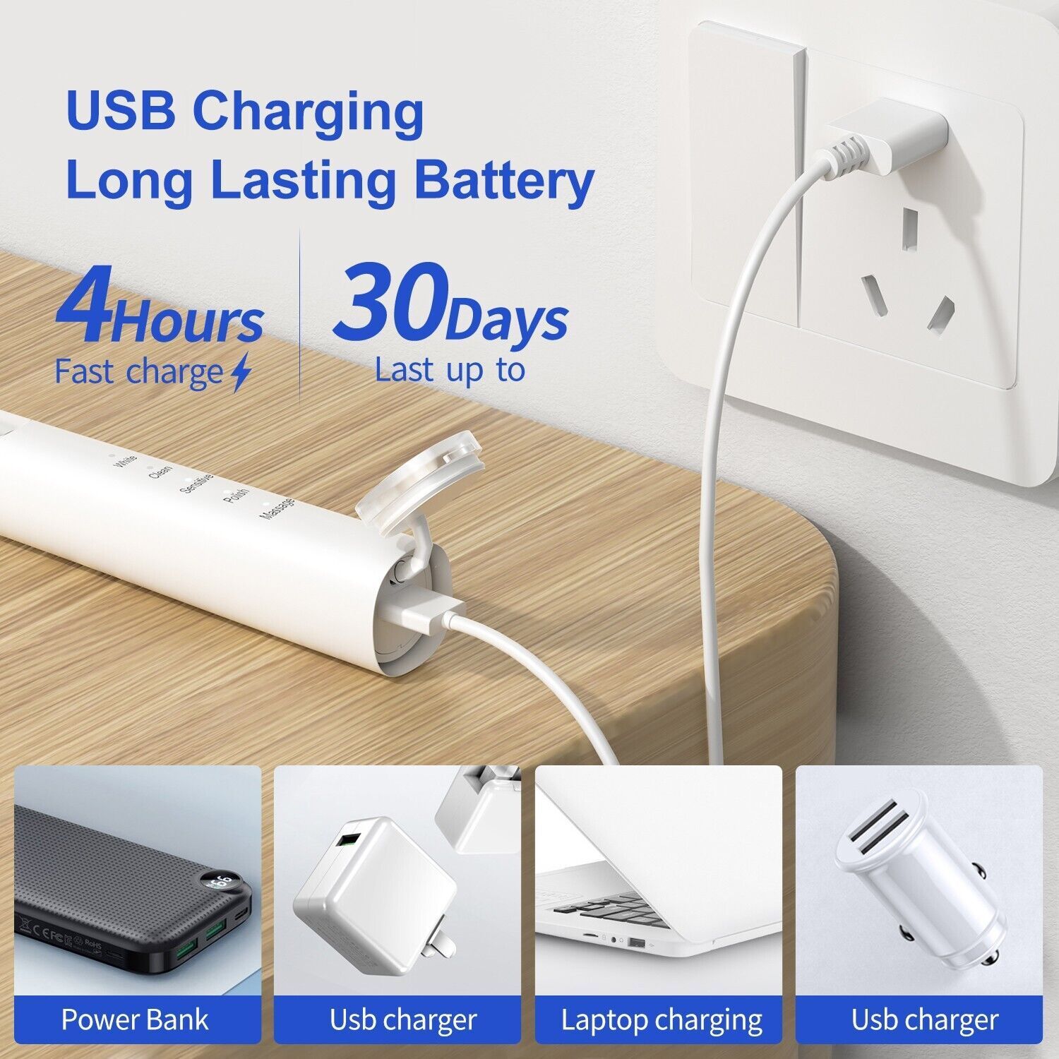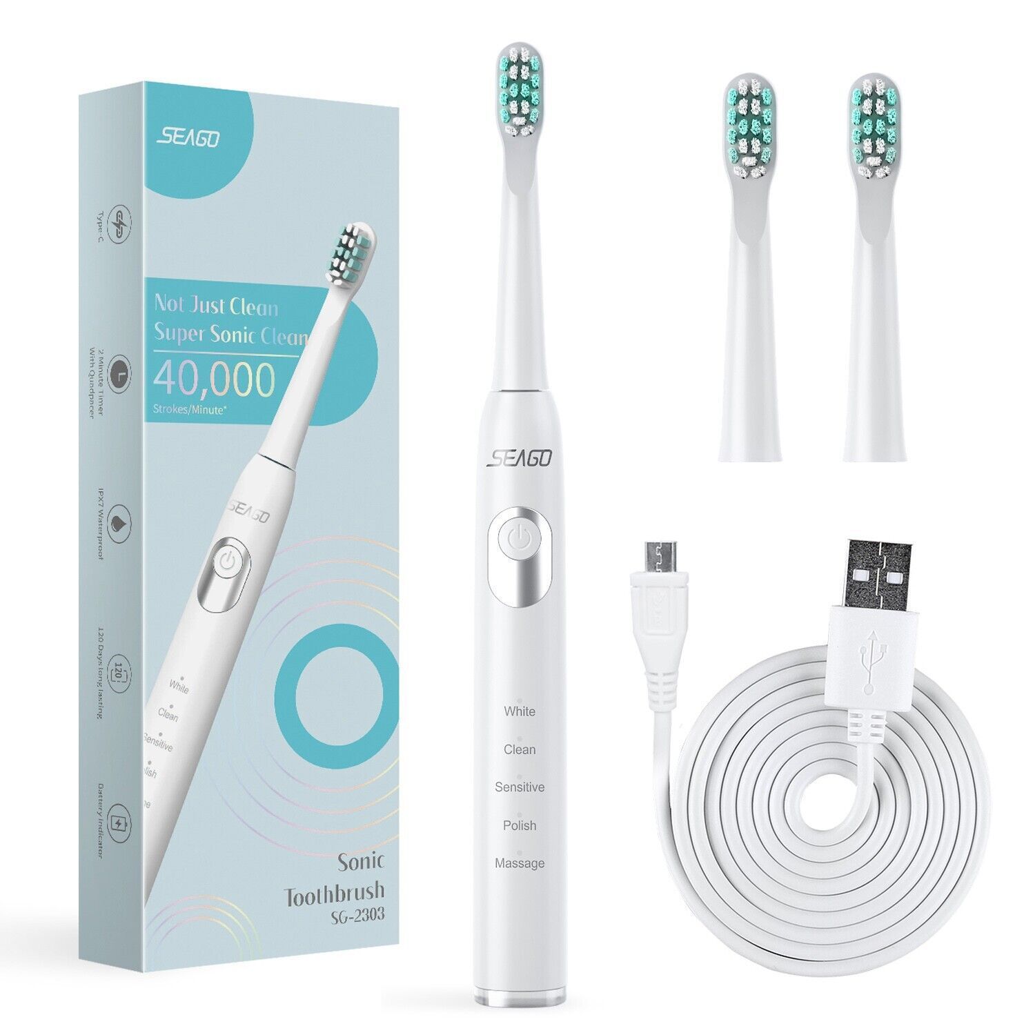 Elektrische Zahnbürste Smart Zahnbürste 5 Modi 700mAh Li-ion Weiß