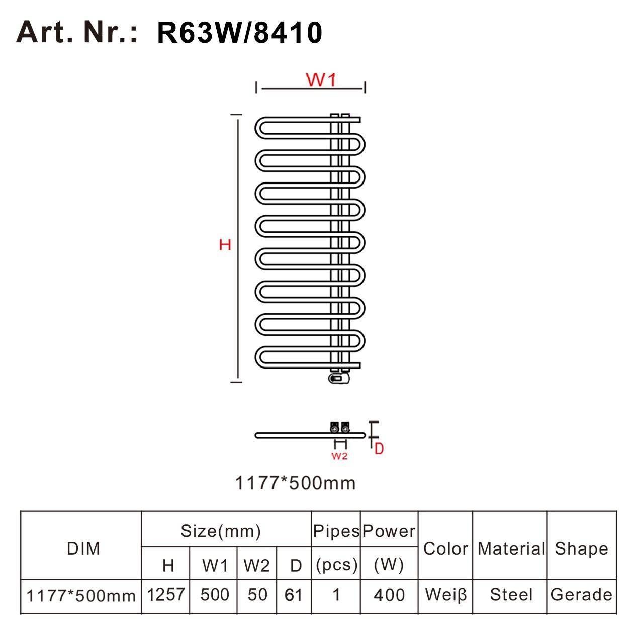Elektrischer Badheizkörper 500x1177 mm Weiß R63/8410