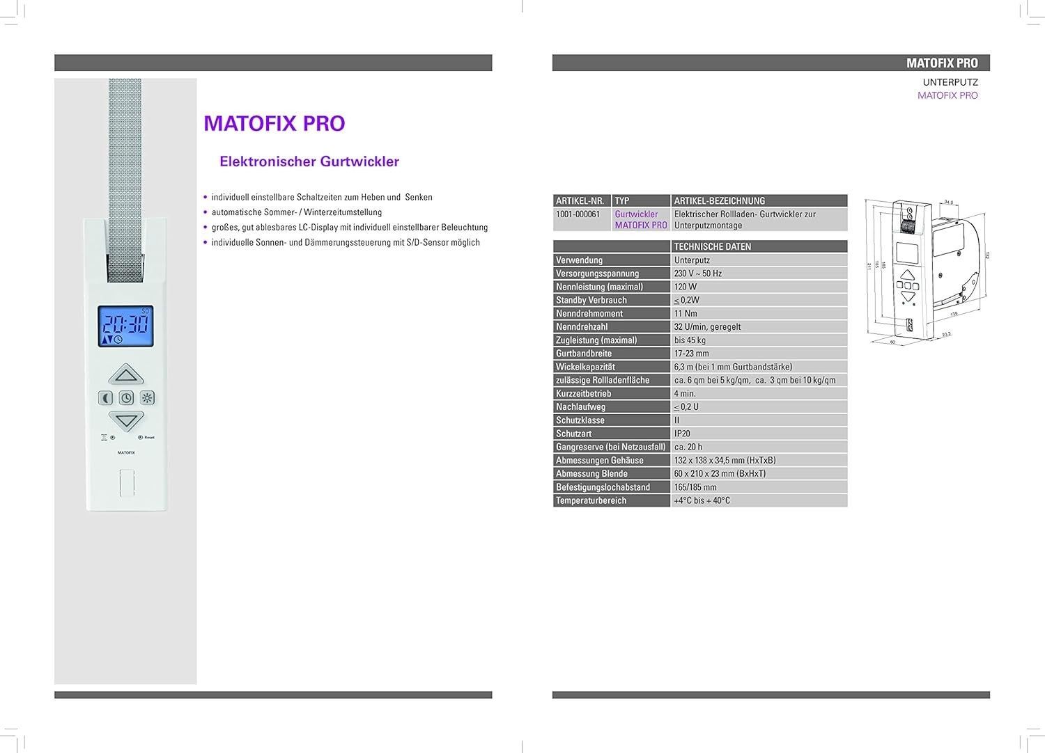 Elektrischer Gurtwickler Matofix PRO für 17-23mm Gurtband Unterputz Zugkraft bis 45Kg