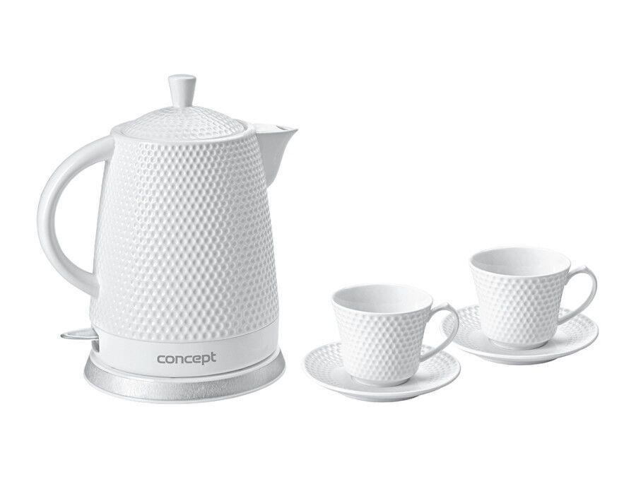 Elektrischer Teekocher Teekessel Keramik-Wasserkocher + 2 Tassen Kaffeepot