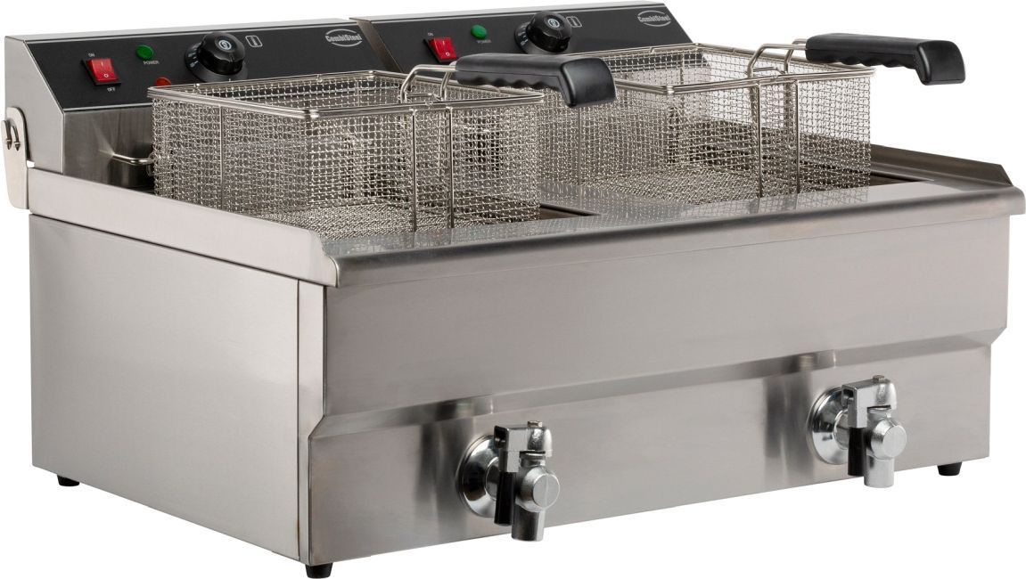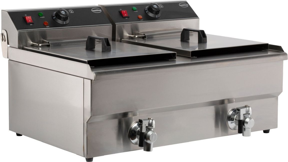 Elektro Doppel-Tischfritteuse 2x10L - mit Ablassventil, für die Gastronomie