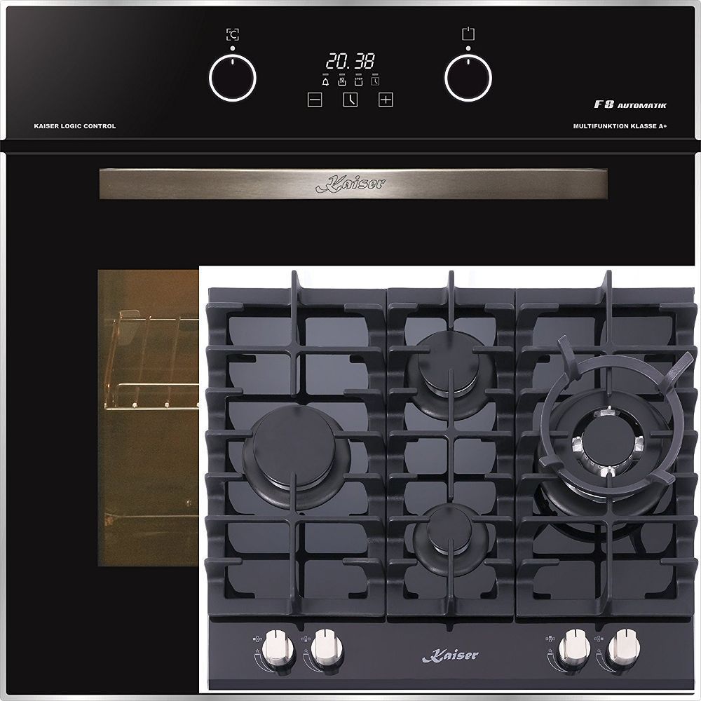 Elektro Einbau Backofen 67L mit Selbstreinigung + Glaskeramik Gaskochfeld 60cm Kaiser