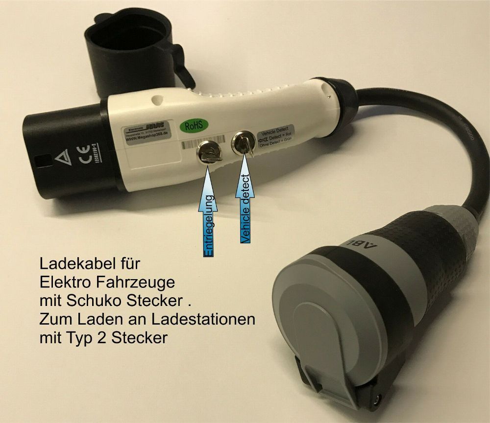 Elektro Fahrrad oder Auto Ladekabel 16 A Typ 2 auf Schuko Adapter f. Ladesäule