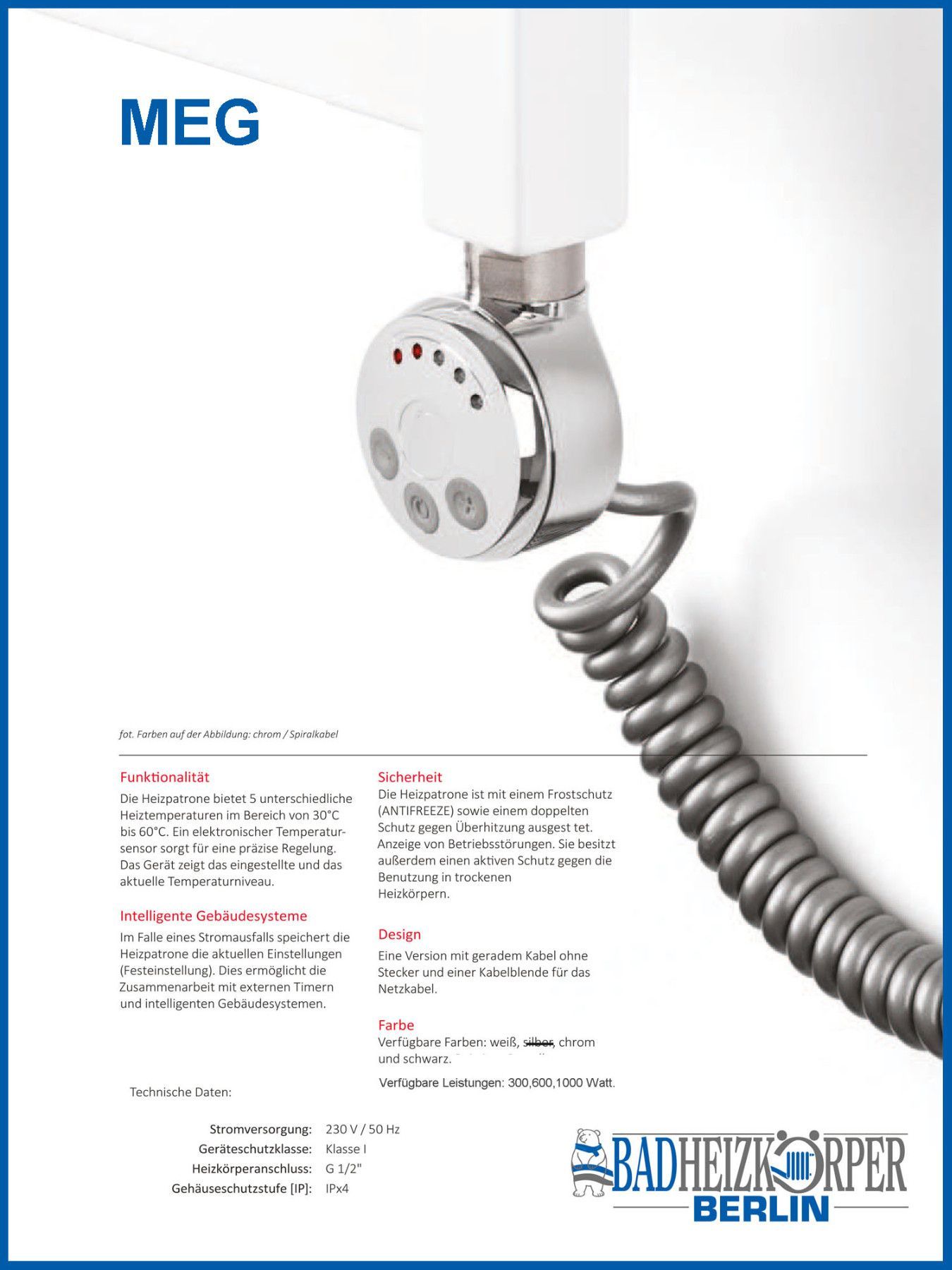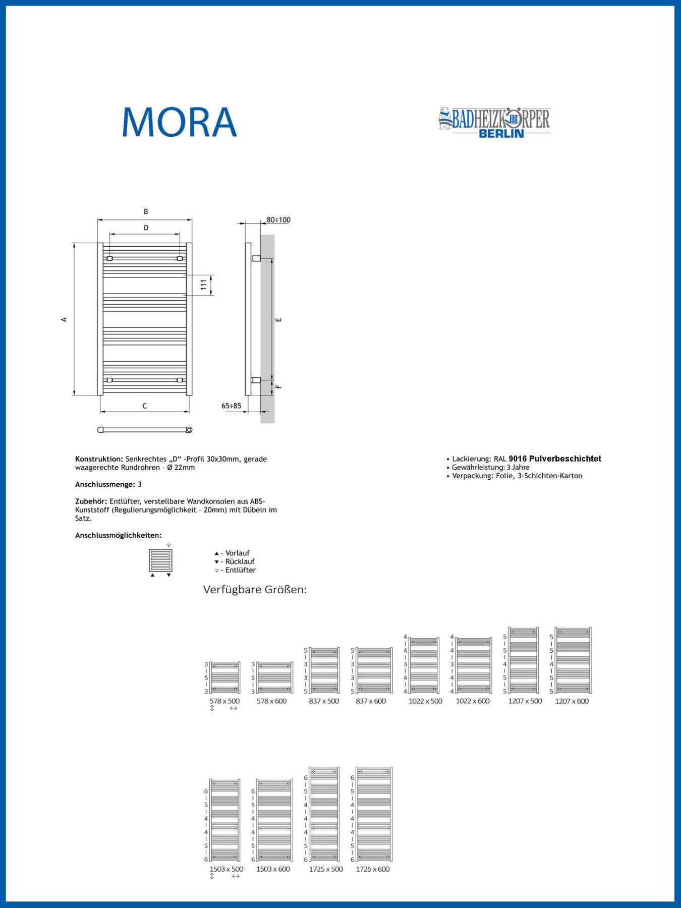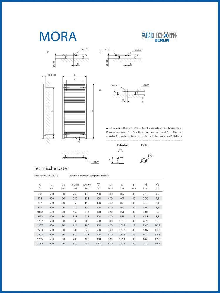 Elektro Handtuchtrockner MORA Weiß rein elektrisch Handtuchwärmer, mit MEG