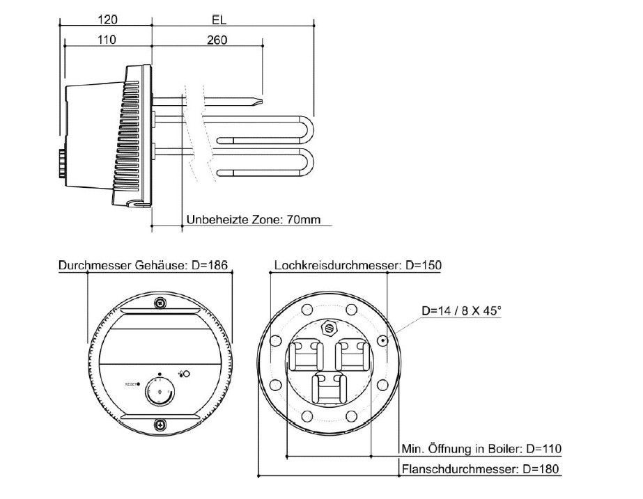 Elektro Heizstab Askoma Flanschheizkörper 180 mm AHFOR-BI-A