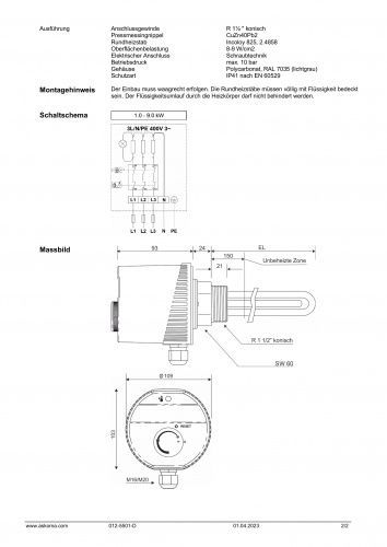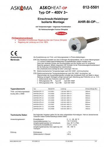 Elektro Heizstab Heizpatrone 2,5-9 kW 230 / 400 V Fronius Ohmpilot AHIR-BI-OP