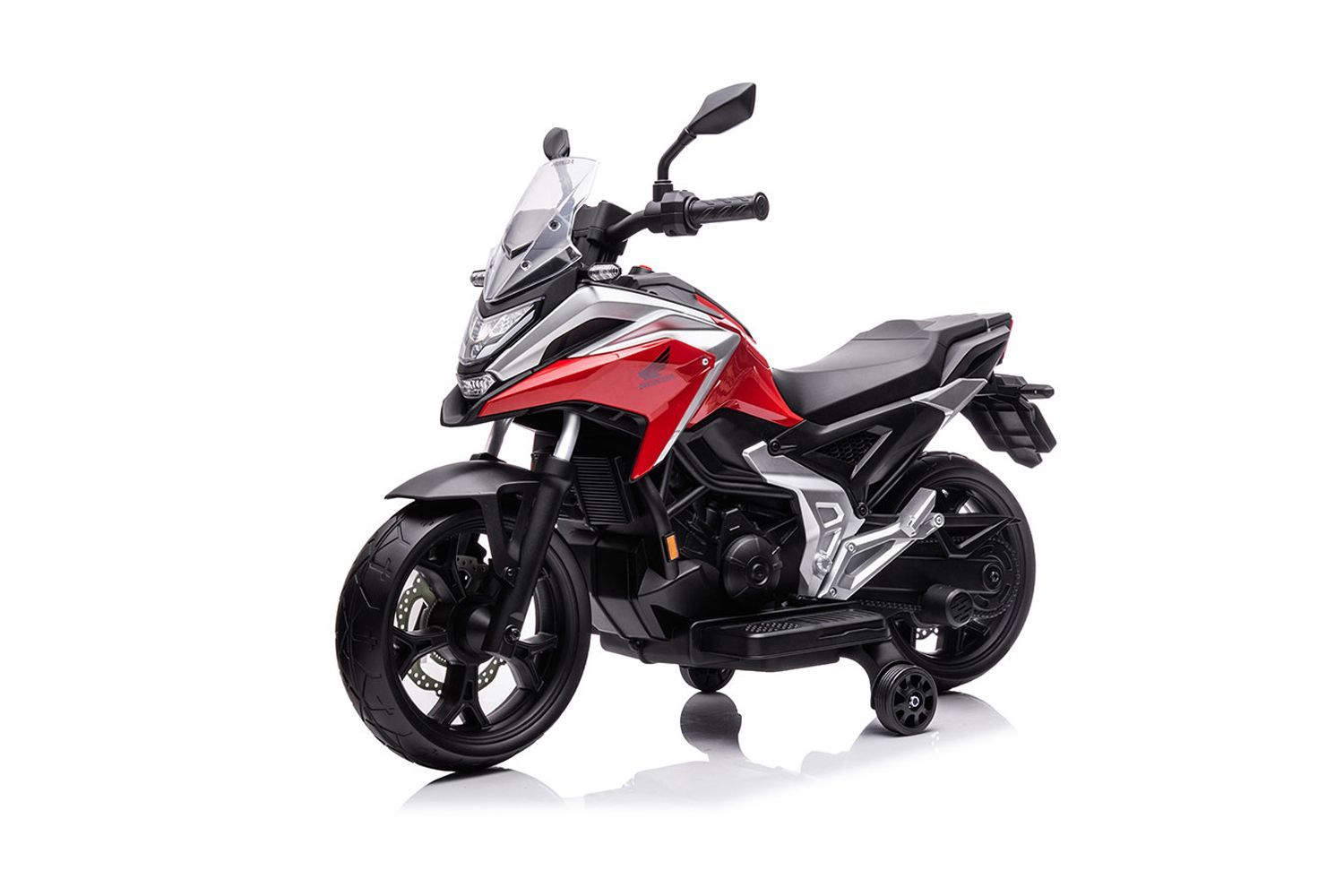 Art-Nr. 1191385 Elektro Kinder Motorrad HONDA NC750X mit Lizenz 2x 25W 12V 4.5Ah LED-Scheinwerfer Rückwärtsgang CVT Softstart Stützräder Elektro Kinder Motorrad HONDA NC750X – Lizenzmodell mit 12V Akku & 2x25W Motoren Original HONDA Design – offiziell lizenziert Zwei kraftvolle 25W Motor