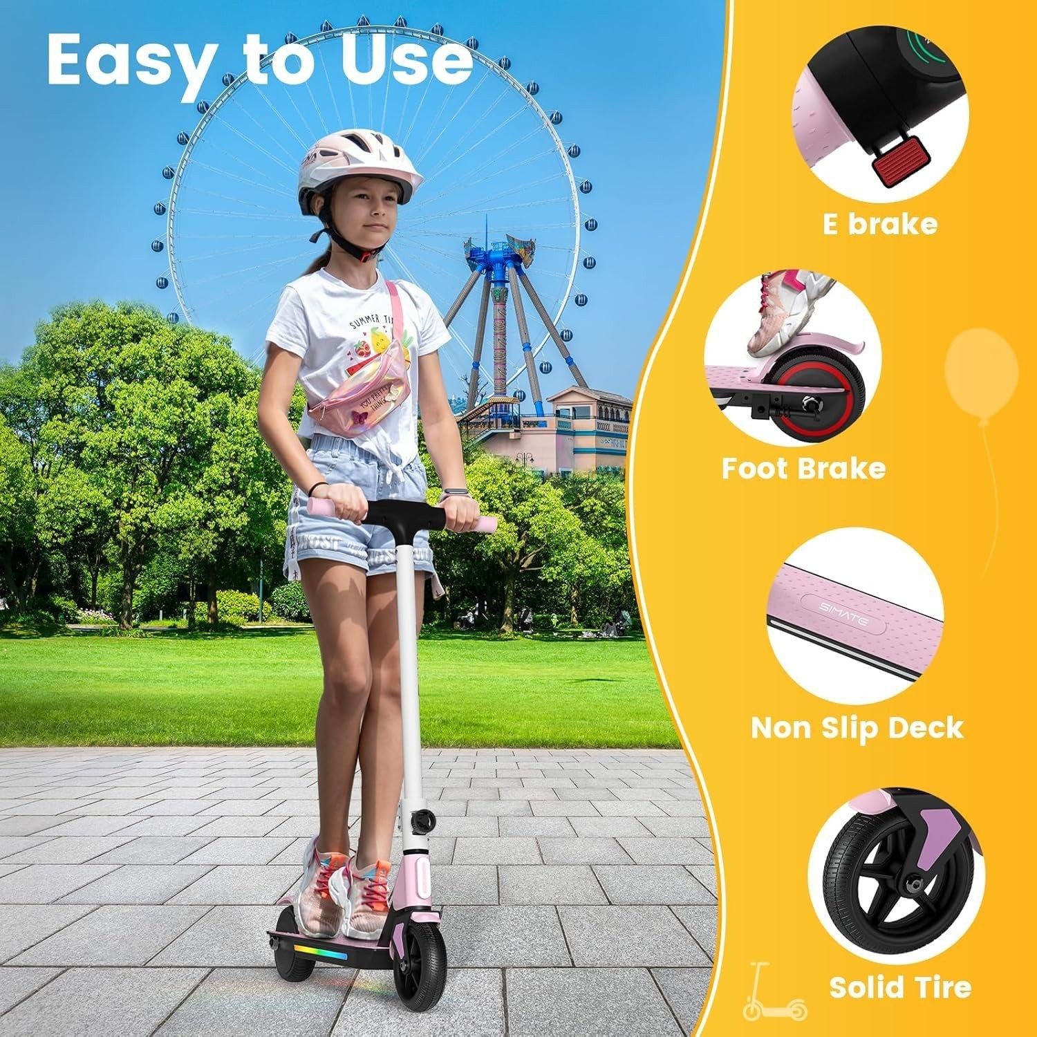 Elektro-Kinderroller mit LED Anzeige und bunten Lichtern für Kinder von 6-14 Jahren