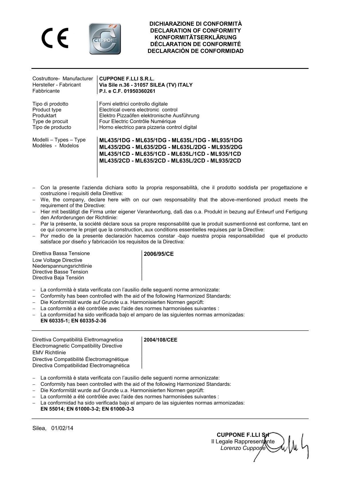 Pizzaofen 2 x 9 Pizzen bis 35 mm Ø, Made by Cuppone TOP Technik und Qualität Innenmaße (BxTxH): 1080 x1080 x 140 mm verstärkte Energiesparisolierung, gradgenaue digitale Steuerung & Temperaturanzeige mit programmierbarer Timervorwahl Temperaturbereich: +50° / +400°C Anschlusswert: 25,2 KW Elektrischer Anschluss: 400 V / 3N / 50 Hz Außenmaß: 1550 x 1460 x 780 mm