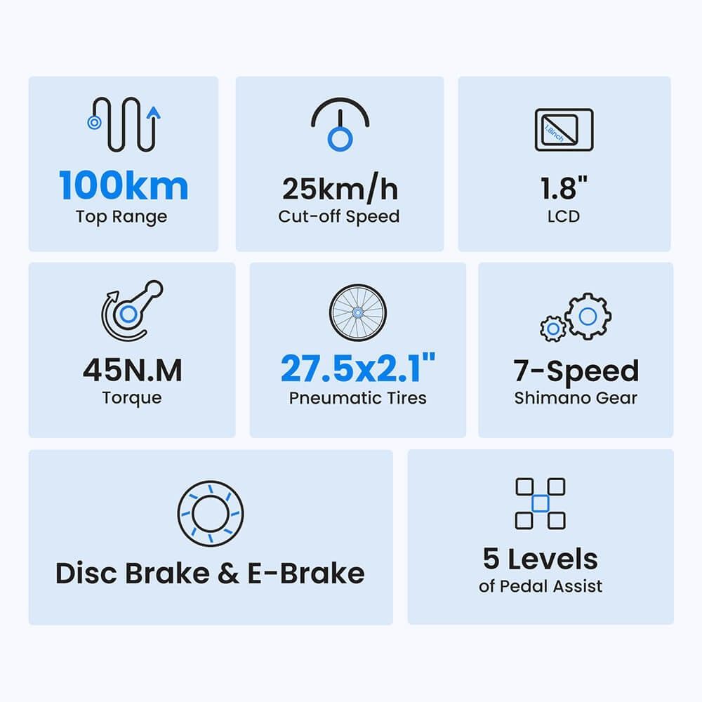 Elektrofahrrad 7-Gang 36V 250W 15,6Ah Touroll J1 ST 27,5 Zoll Trekkingrad