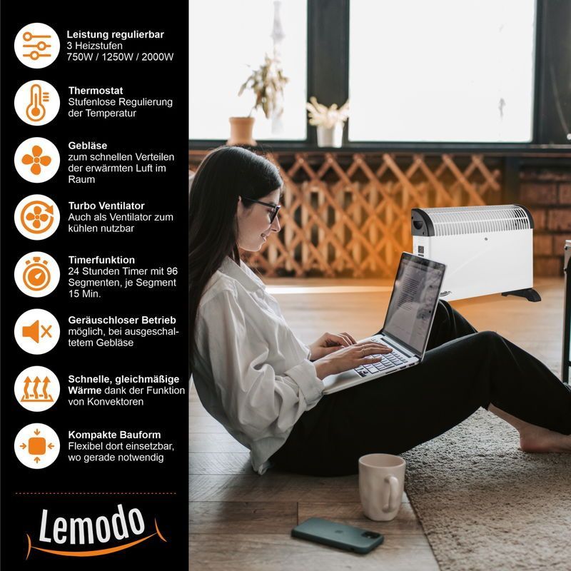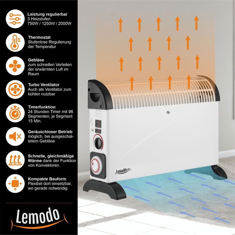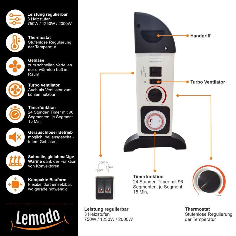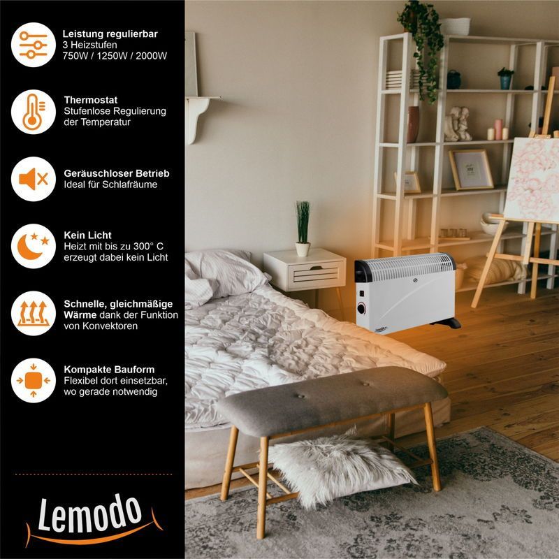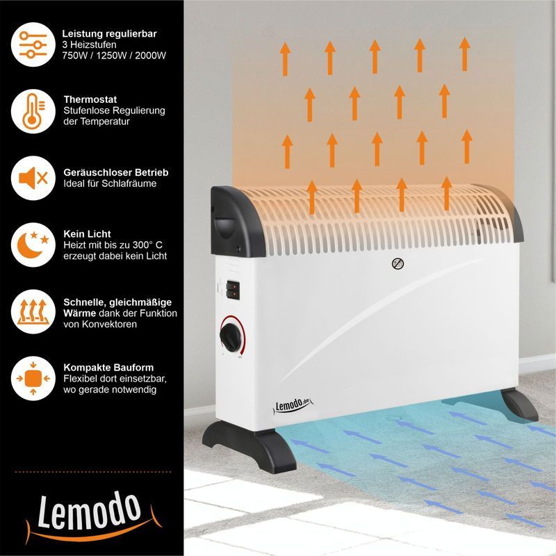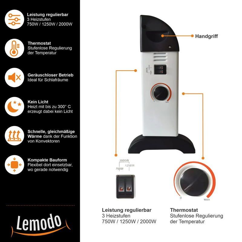 Elektroheizung mit 3 Leistungsstufen, mobiler und effizienter Elektroheizkörper : Sta