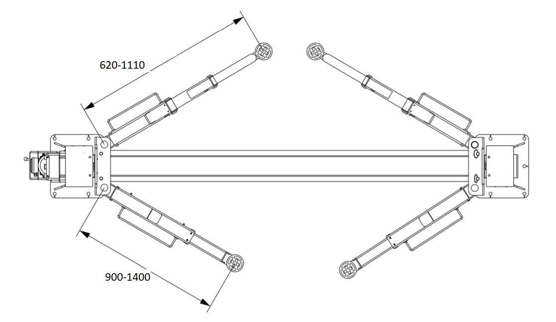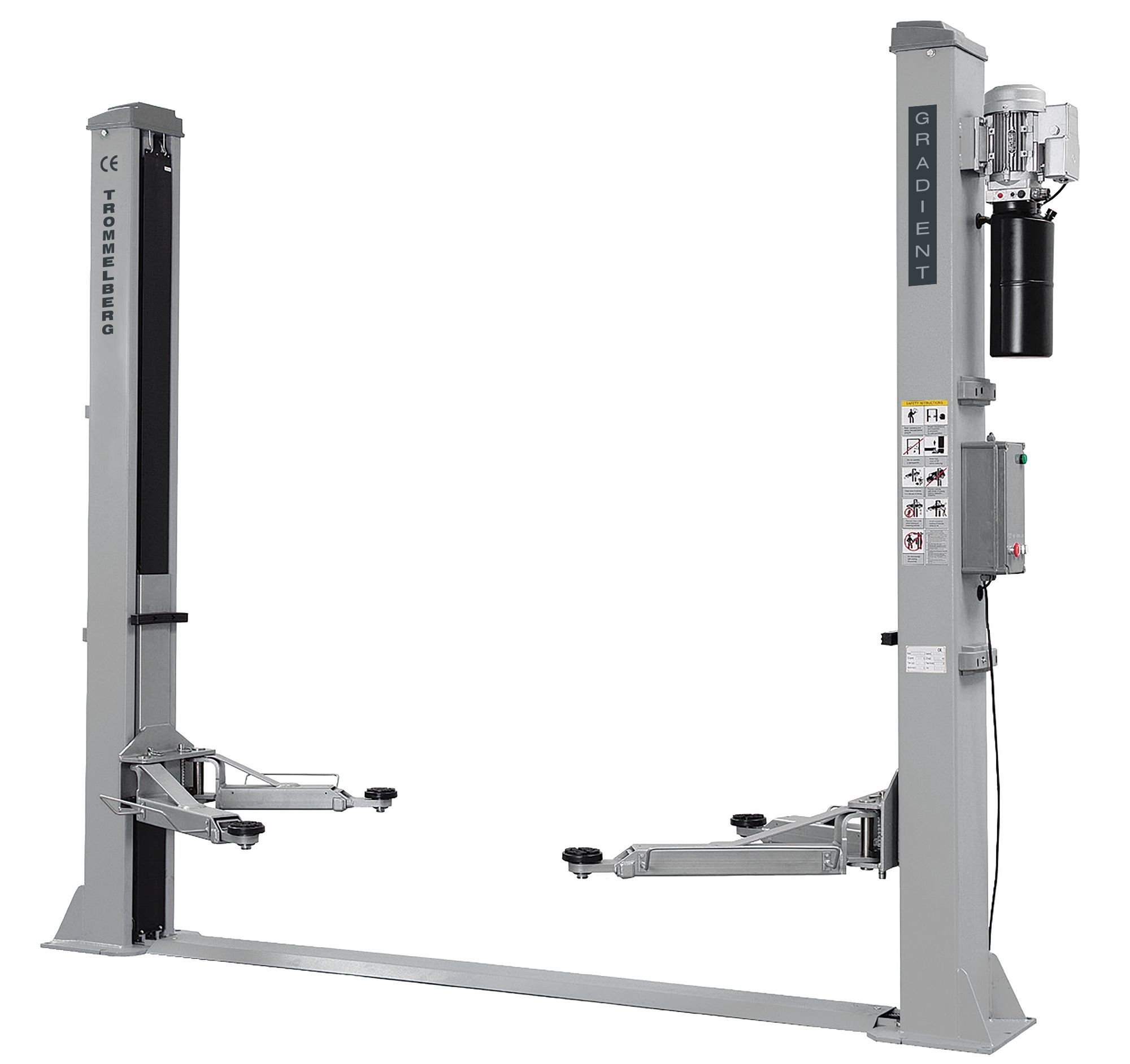 NEU 2022 Elektrohydraulische Hebebühne für Fahrzeuge bis 4 t. Inklusive CE-zertifiziertem Sicherheitssystem. Mit niedriger Synchronisation. Eigenschaften • Asymetrische Tragarme – für optimale Türfreiheit • Untere Synchronisation: 2 Hydraulikzylinder + 2 Seilzüge zur Synchronisation • Sichere und zu