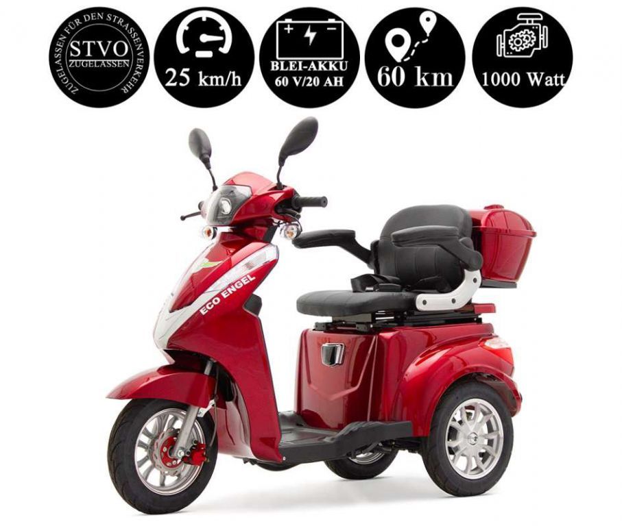 Elektromobil Eco Engel 501 Rot, 1000 Watt Dreirad Roller, 25 km/h Seniorenmobil