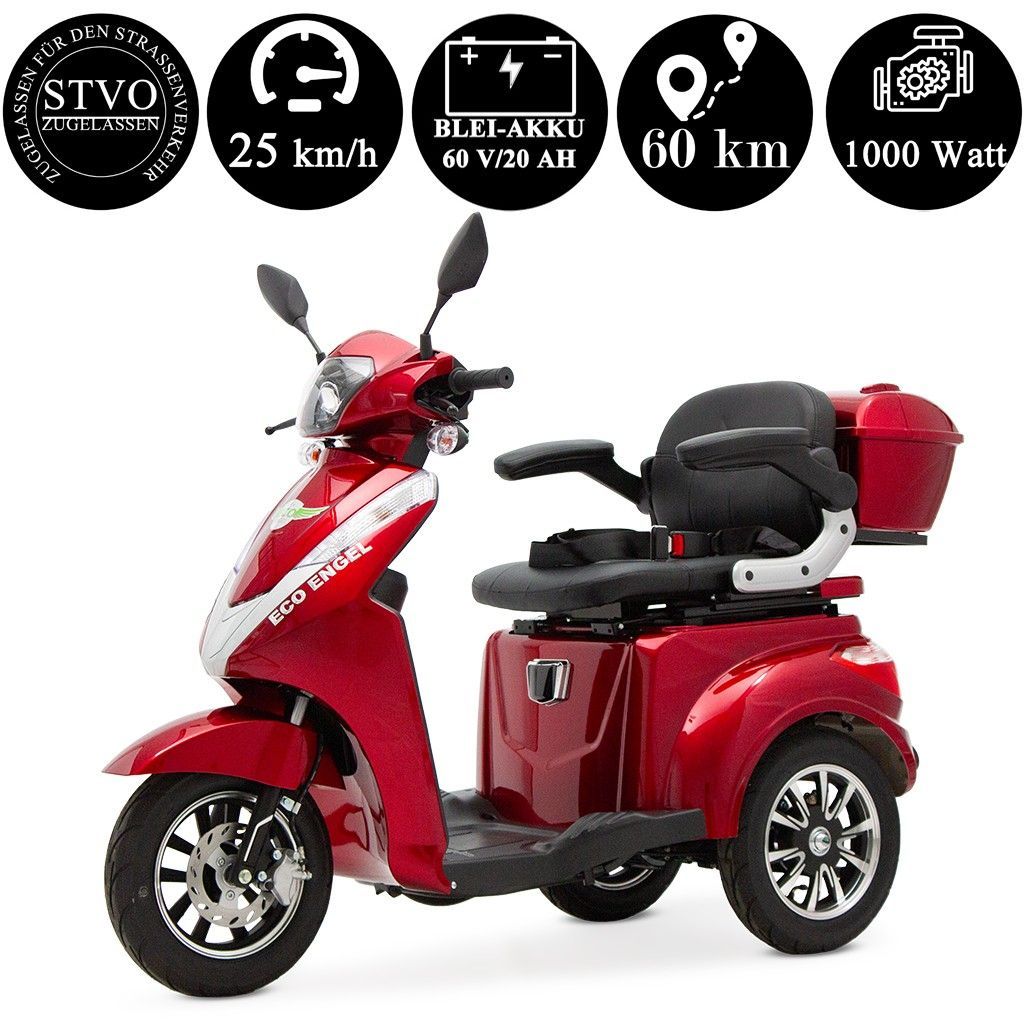 Elektromobil Seniorenmobil E-Roller ECO ENGEL 501 Rot, 25 km/ h mit 1000 Watt Motor
