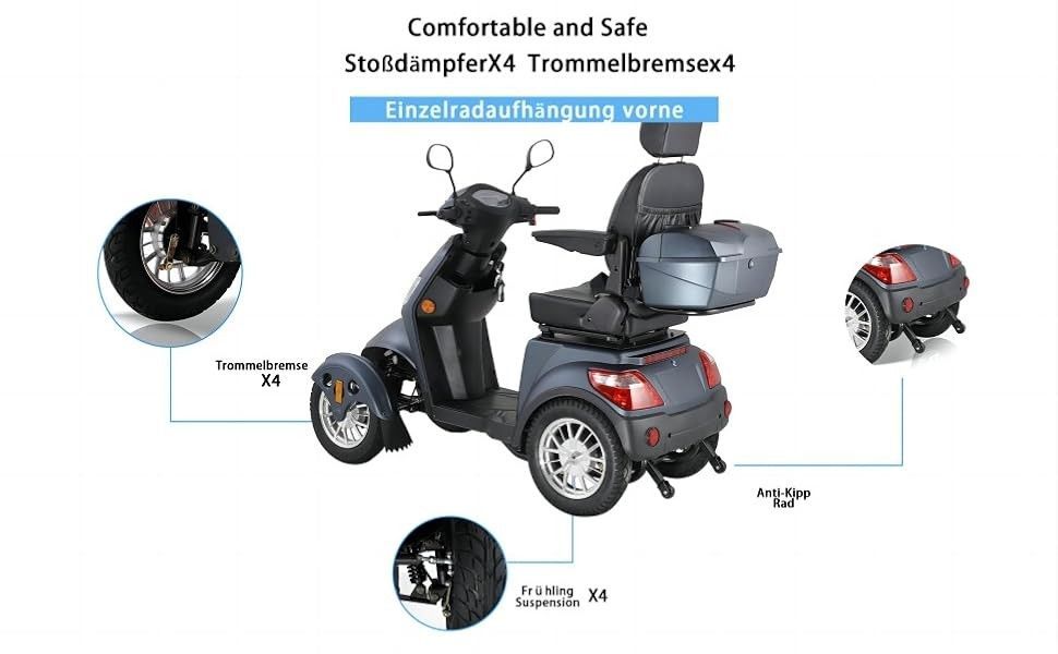 Elektromobil Zvgreen m500s25 Elektroroller,4 Rad Seniorenmobil, 3 Geschwindigkeiten