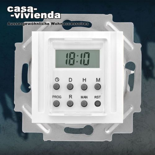 casavivienda Außergewöhnliche Wohnaccessoires ... ...anders als alle Anderen... Elektronische LCD-Zeitschaltuhr, Wochenprogramm, 2500 (1500) W, 230 V AC für VIKO® Meridian - Reinweiß glänzend (RAL9010) Verwendung: passend für VIKO® Meridian - Reinweiß glänzend Die Unterputz-Zeitschaltuhr, die in jed