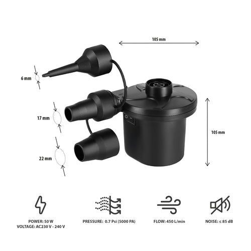 Elektropumpe 450 l/min Camping Luftpumpe mit 3 Adaptern NILS CAMP NC17115