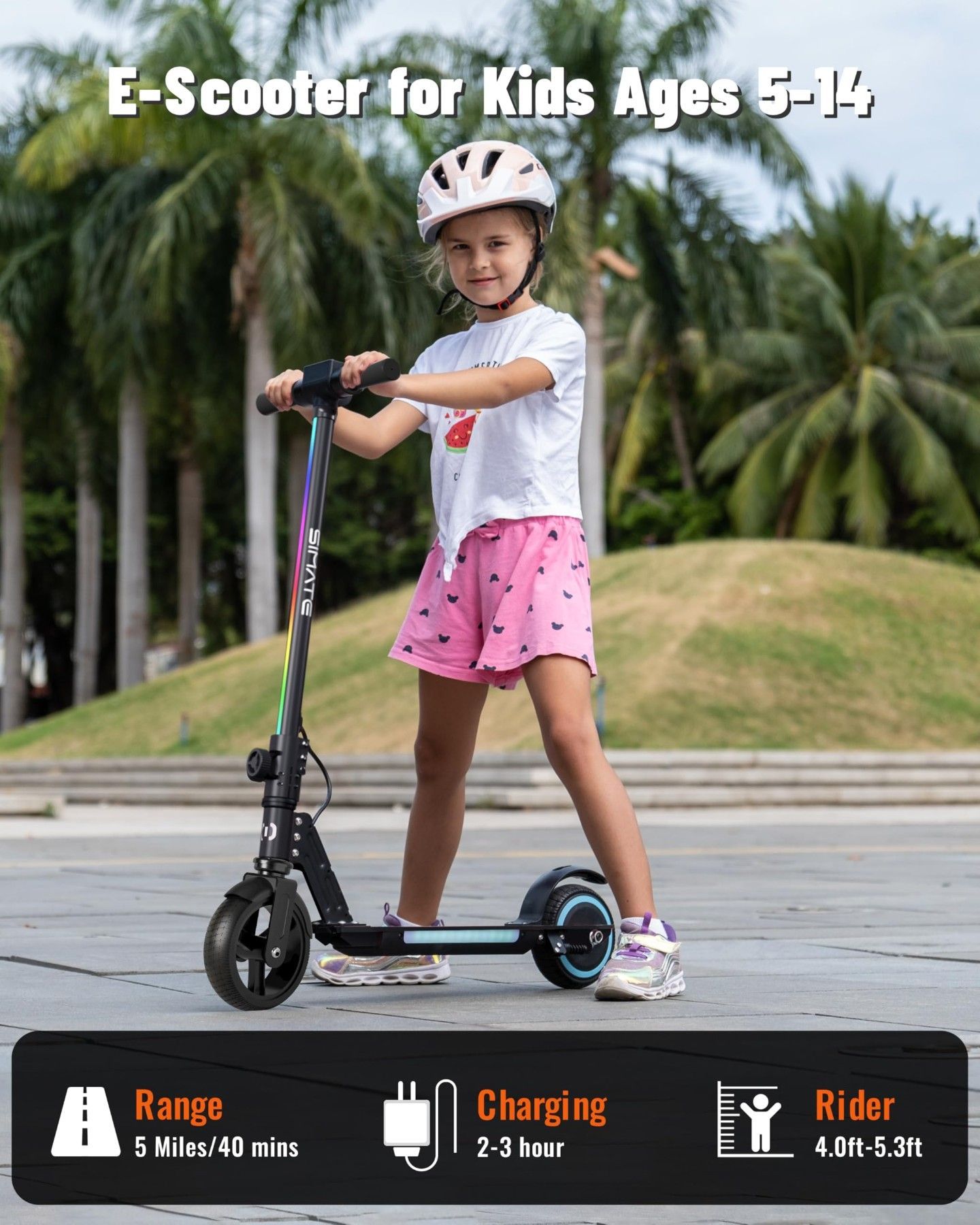 Elektroroller für Kinder klappbar E-Scooter mit LED-Display, Lichtern & Doppelbremse