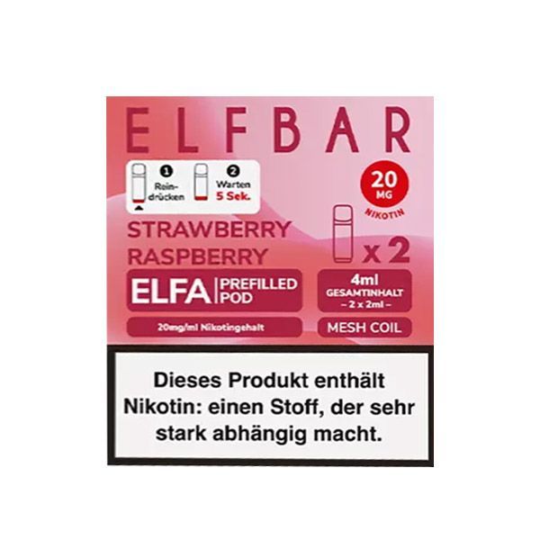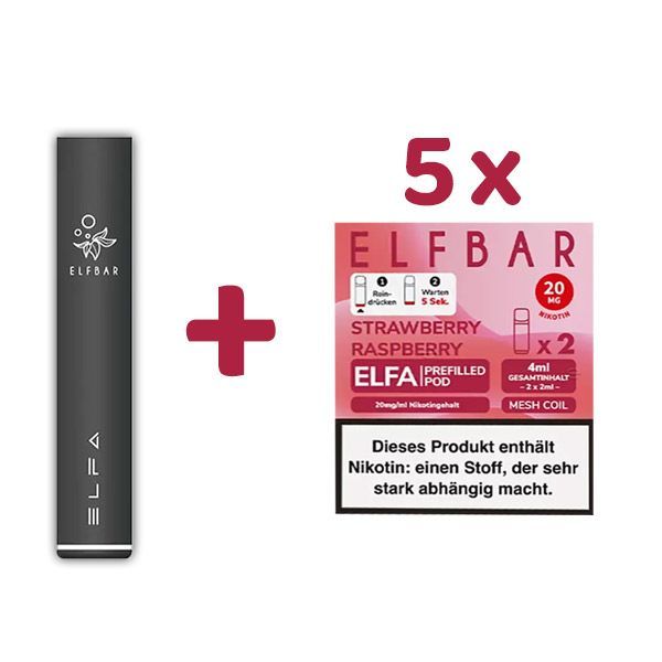 ELFBAR ELFA Akku (Farbe zufällig) + 5 x ELFBAR ELFA POD Strawberry Raspberry 20mg ml Nikotin Wenn Sie eine bestimmte Farbe des Akkus bevorzugen, können Sie diese gerne im Kommentarfeld im Bestellvorgang angeben. Wir können Ihnen leider nicht garantieren, dass die Farbe auch lieferbar ist! Mit dem EL