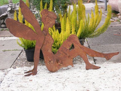 ELFE Fee sitzend 3D doppelarmig 60cm Engel Rost Edelrost Metall Figur Rostfigur