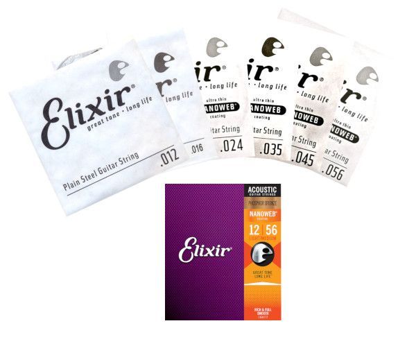 Elixir 16077 Nanoweb - Phosphor Bronze, light/medium (012-056) Satz oder Einzelsaite