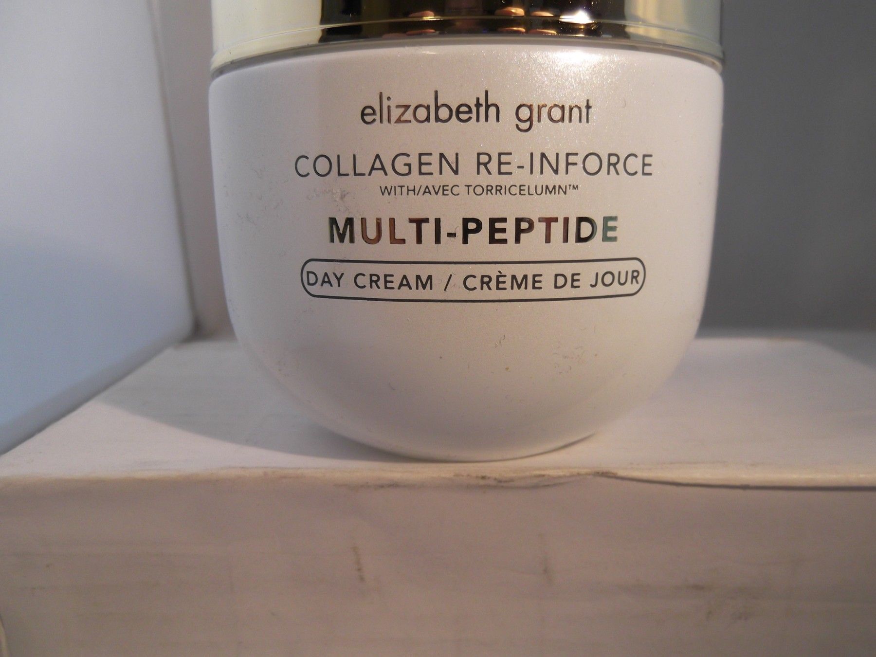 ELIZABETH GRANT COLLAGEN MULTI-PEPTIDE DAYCREAM Inhalt 100 ml Diese Tagescreme ist die Antwort für die Haut,die beginnt,Falten zu entwickeln und zu erschlaffen.Kollagen und Torricelumn in Kombination mit einer hochwirksamen Konzentration von Peptiden,die auf die natürliche Elastizität der Haut abzie
